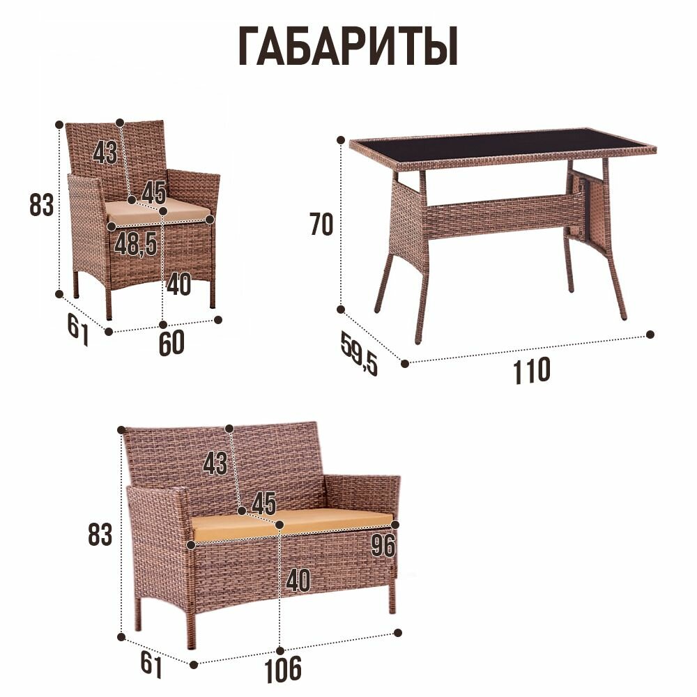 Набор террасной мебели Глория-2 с1195/125 / Обеденный стол / диван / 2 кресла