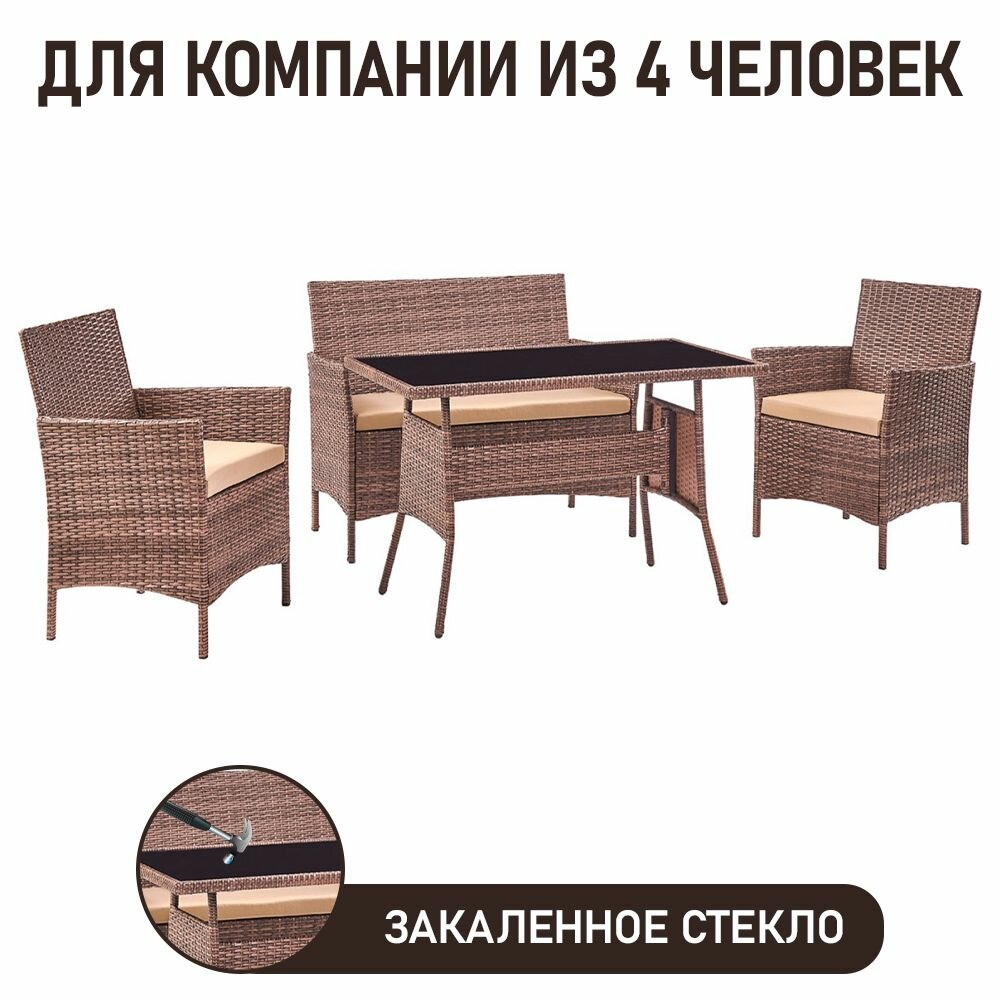 Садовая мебель для дачи из искусственного ротанга Киото Лайт капучино. Набор садовой мебели