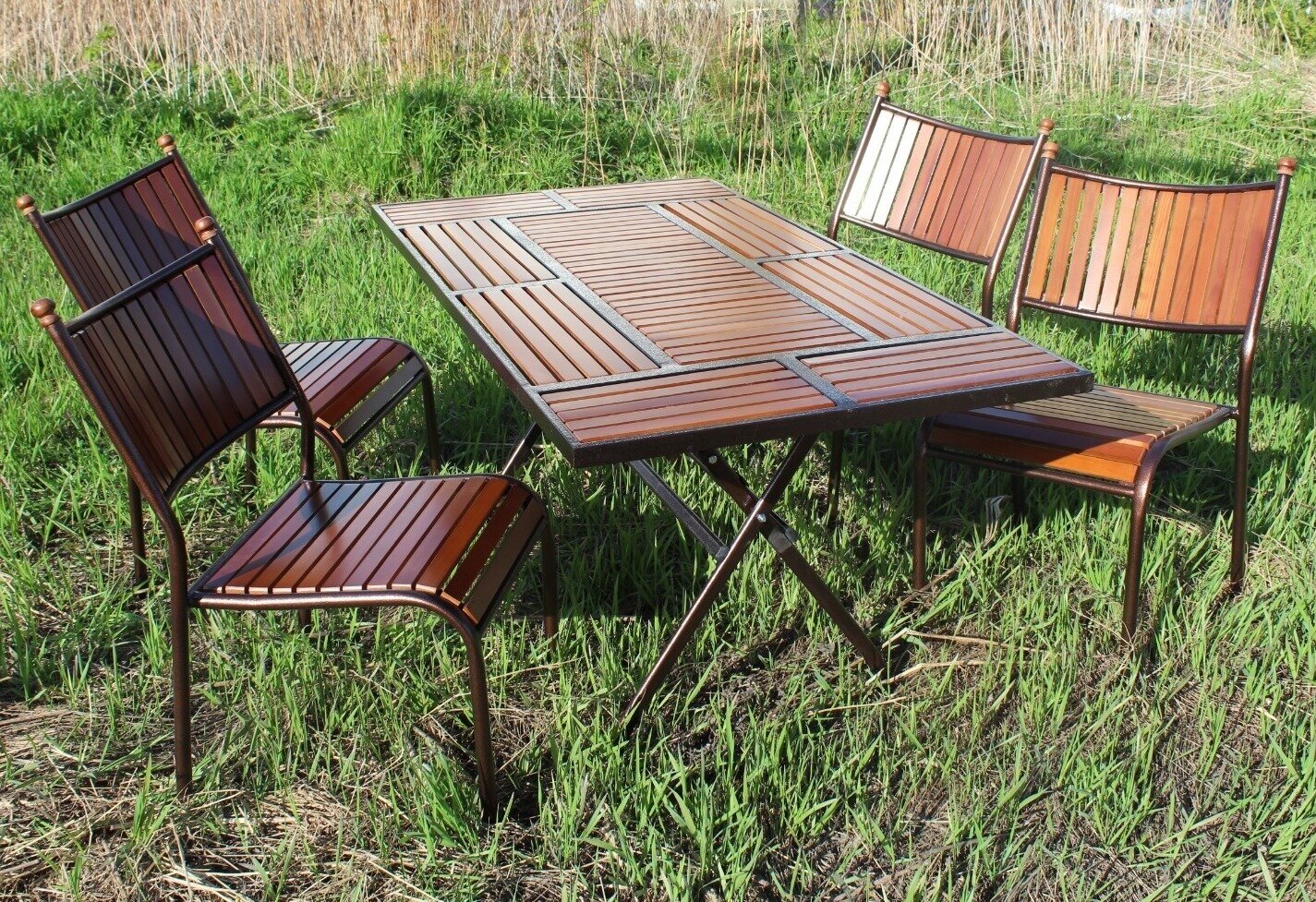 Купить Комплект мебели для сада / складной стол дерево+ металл / 4 стула
