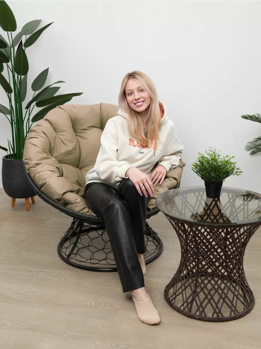 Кресло папасан с ротангом чёрное, бежевая интересное: