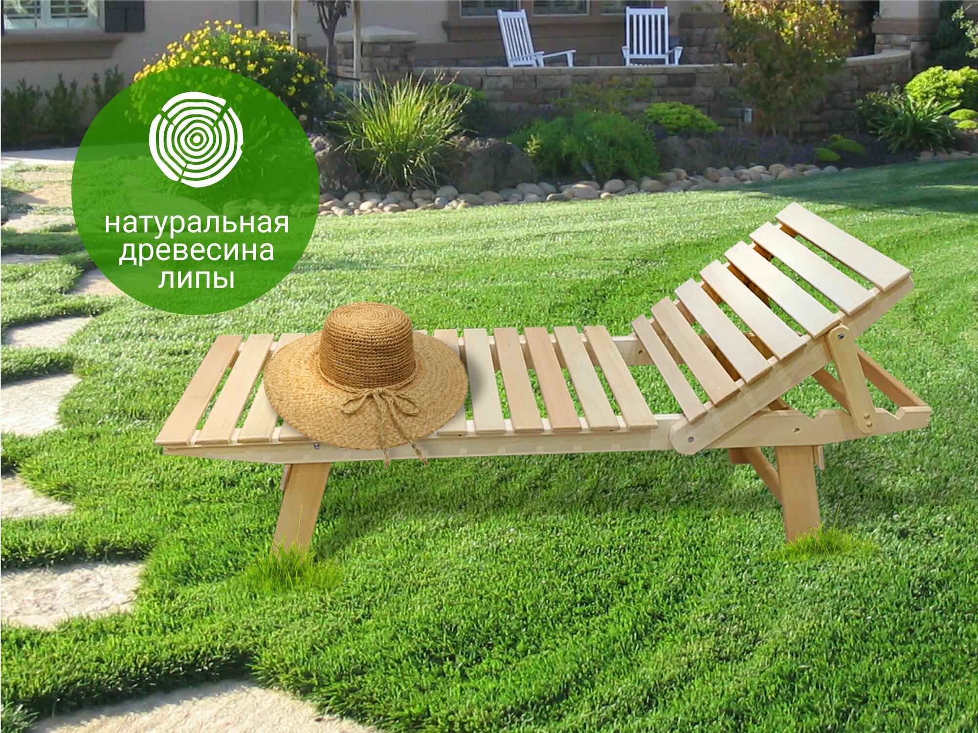 Купить Шезлонг-лежак деревянный 55х188х44 массив липы / шезлонг для дачи / садовая мебель