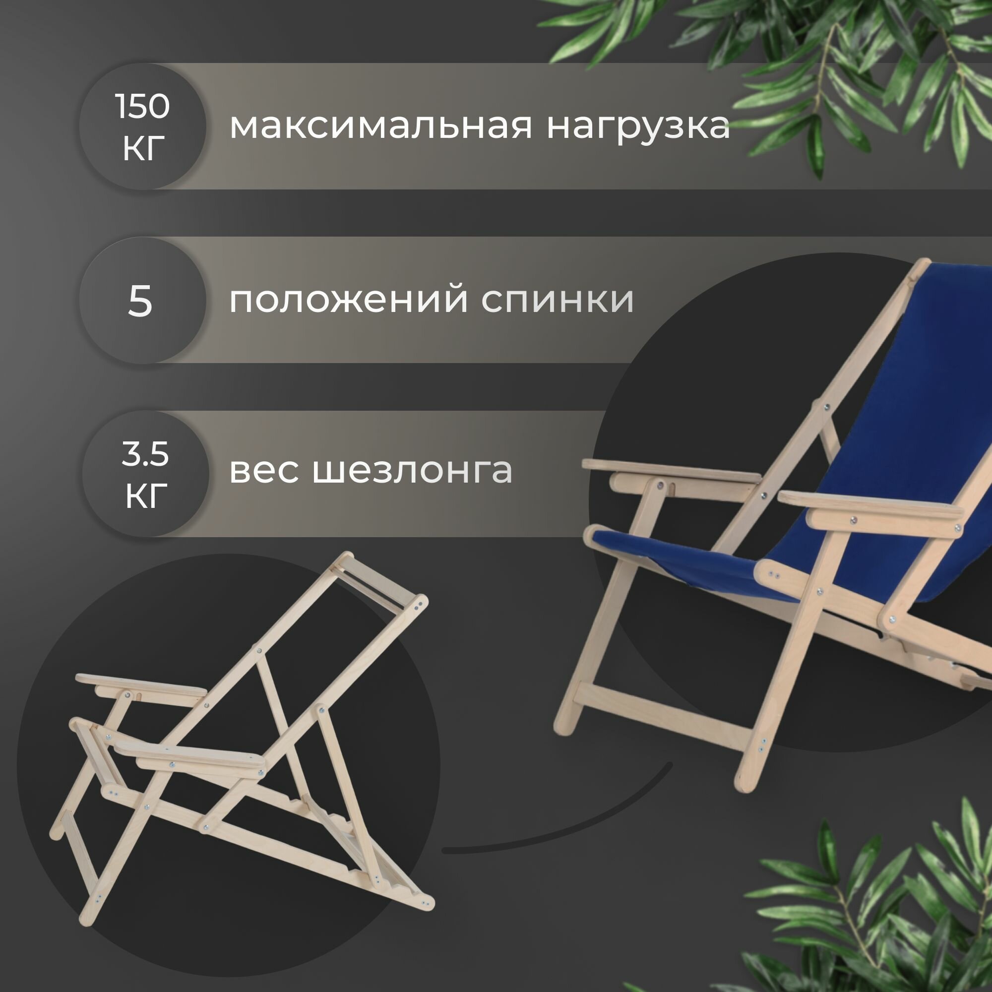 Кресло-шезлонг "Элби" с подлокотниками без шлифовки с синей тканью для дома и для дачи интересное: