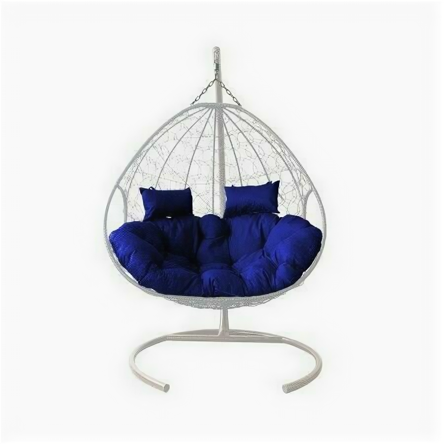 Подвесное кресло кокон для двоих, Садовые качели. Белый каркас синяя подушка