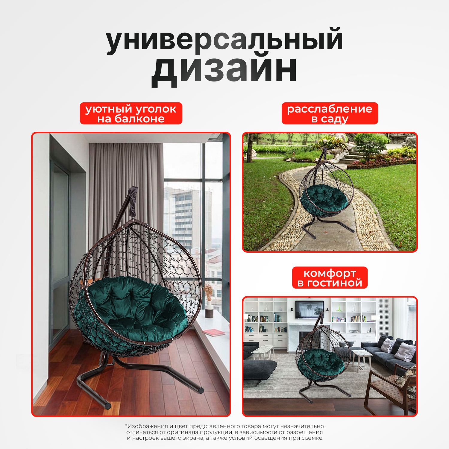 Купить Подвесное кресло-кокон Венге с Зеленой велюровой подушкой HomeKokon, усиленная стойка до 200кг, 175х105х63