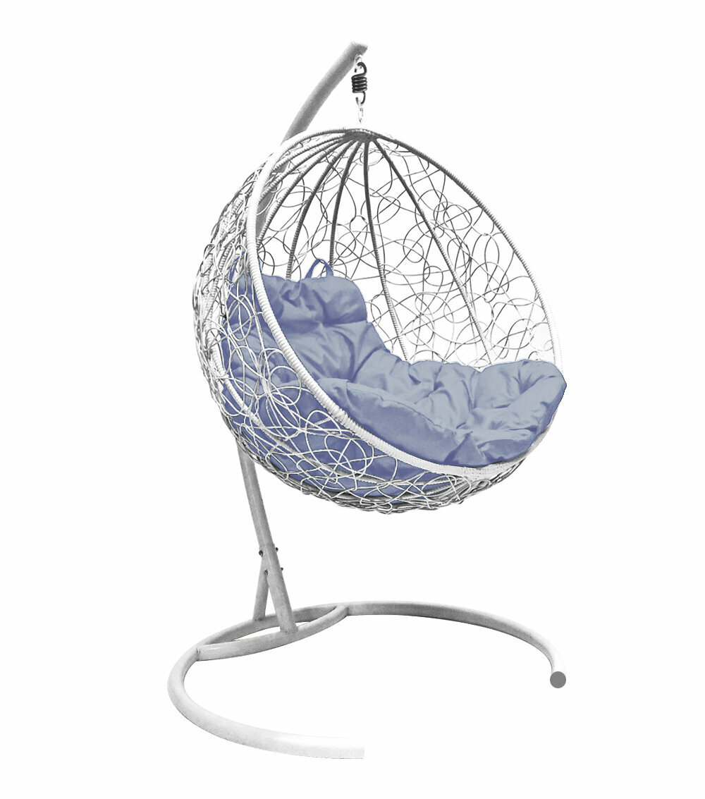 Подвесное кресло кокон"круглый" ротанг цвет: белый ; подушка: голубой