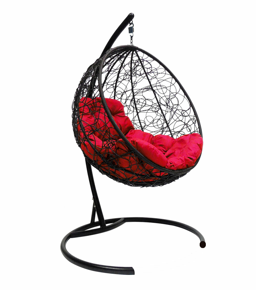Подвесное кресло ротанг чёрное, красная подушка
