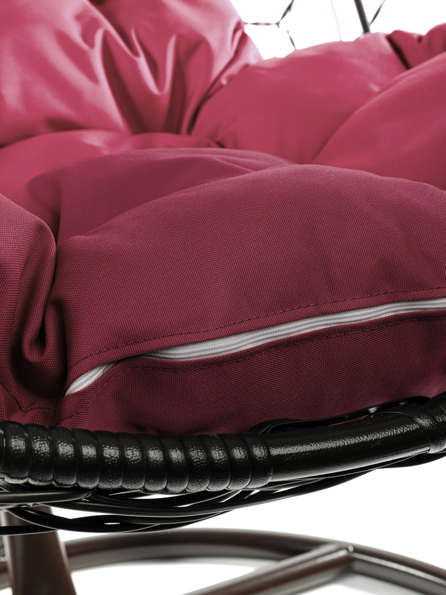 Купить Подвесное кресло Круг ротанг чёрное, бордовая подушка