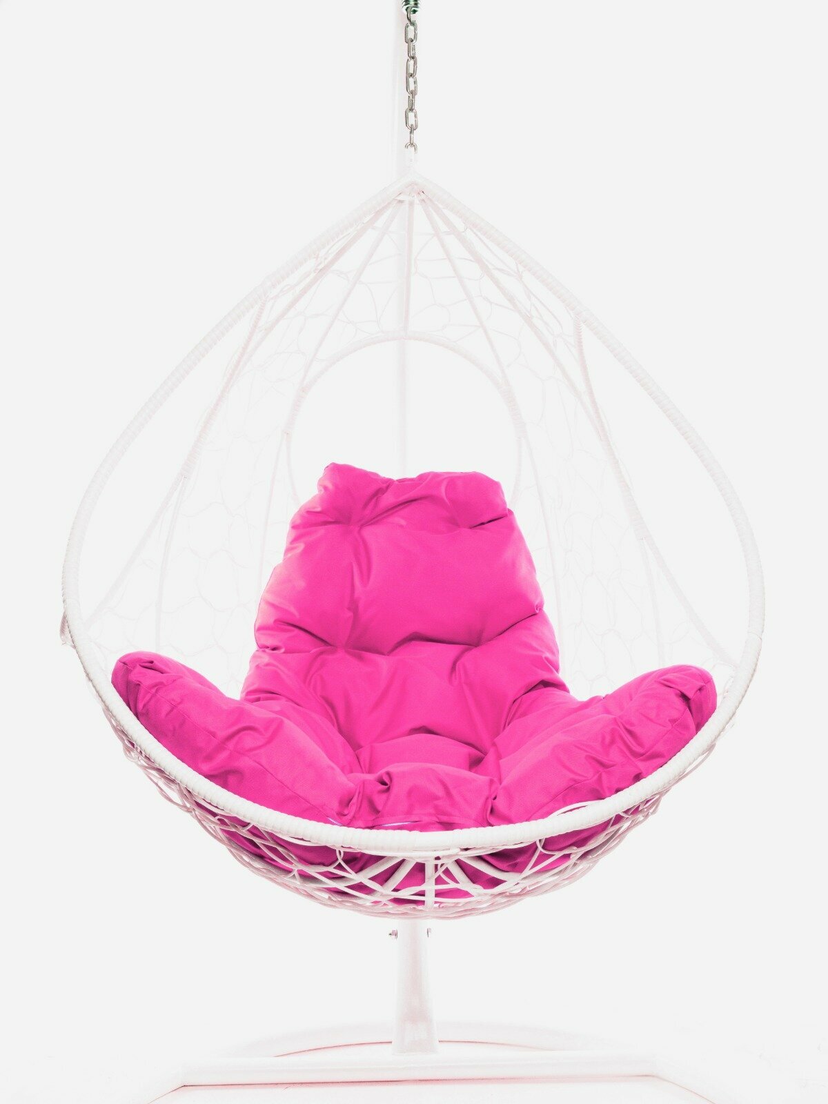 Купить Подвесное кресло ротанг белое, розовая подушка