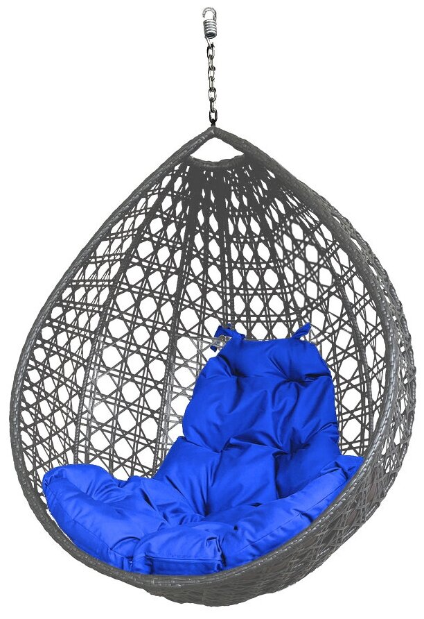 Купить Подвесное кресло капля люкс серое (без стойки), синяя подушка