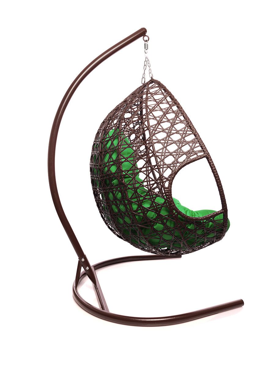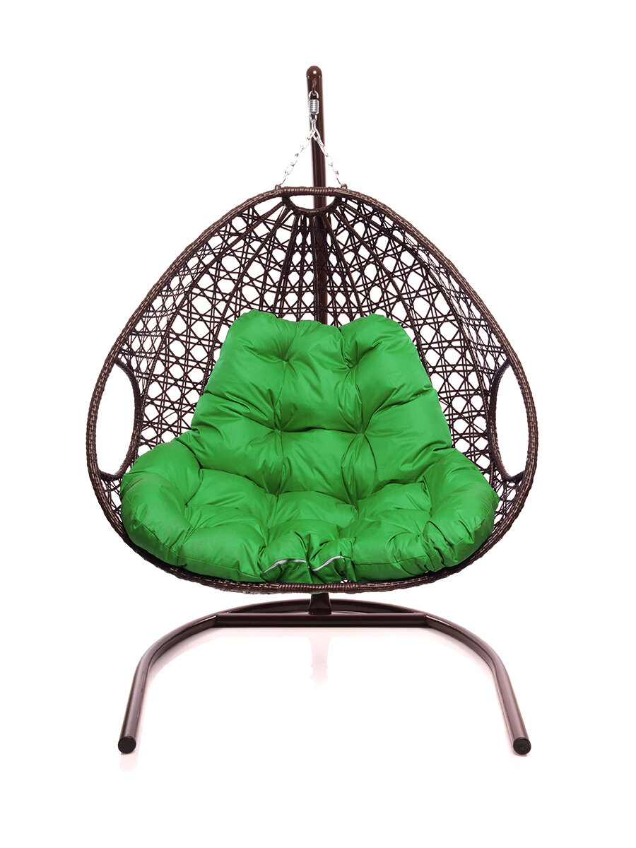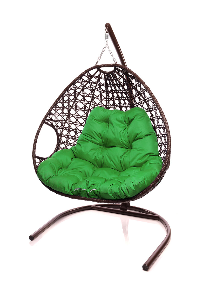Купить Подвесное кресло коричневое M-Group Для двоих люкс зелёная подушка