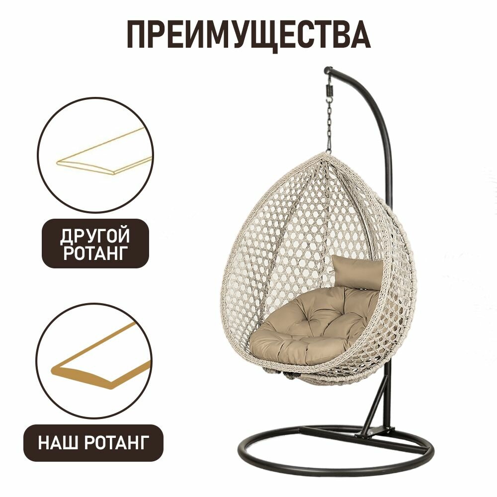 Подвесное кресло качели плетеное из искусственного ротанга Сафира Премиум, пшеничный