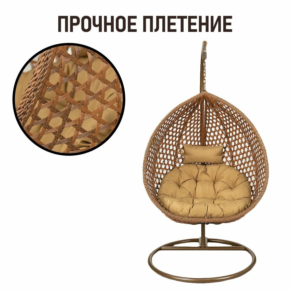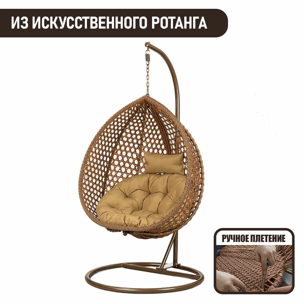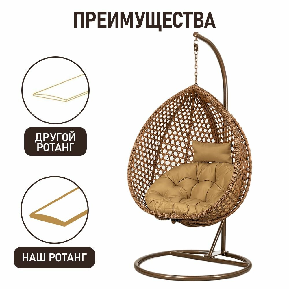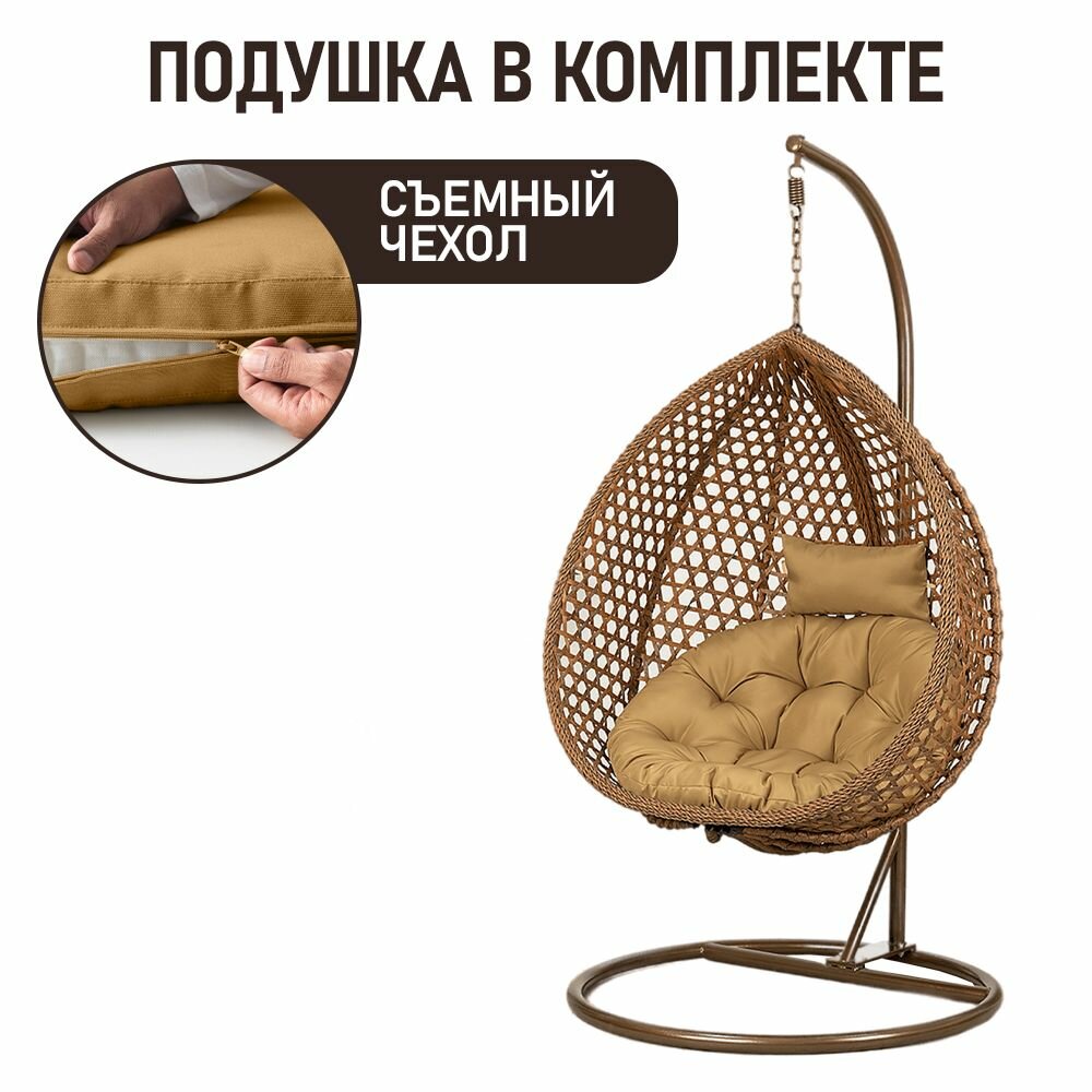 Подвесное кресло качели плетеное из искусственного ротанга Сафира Премиум, пшеничный