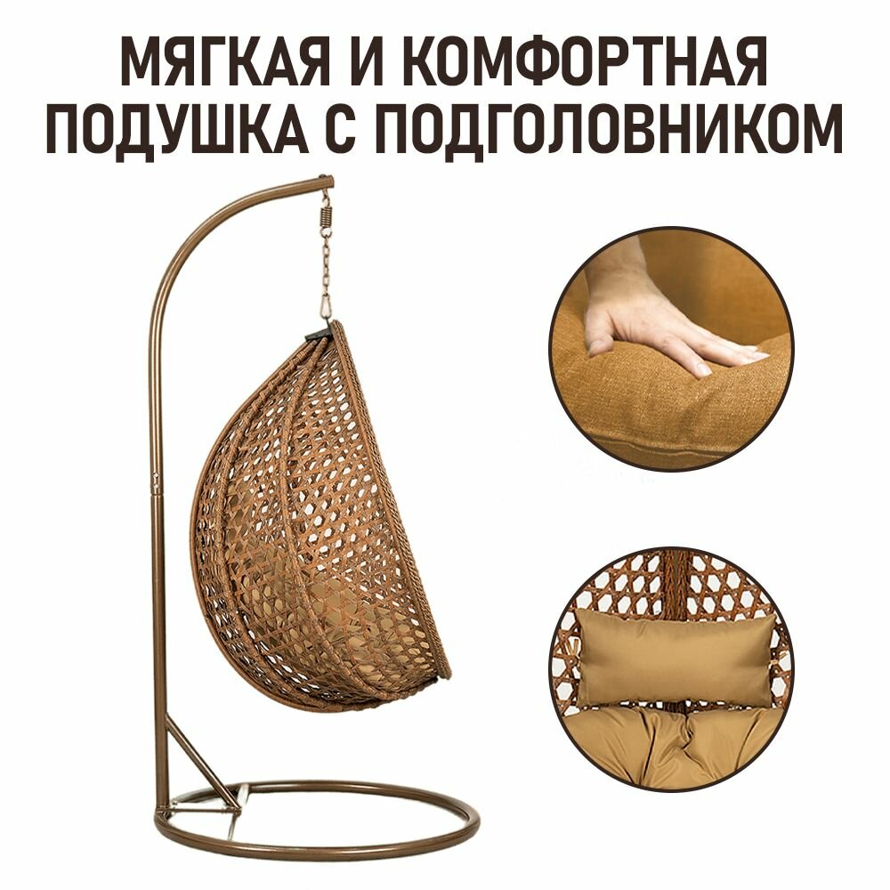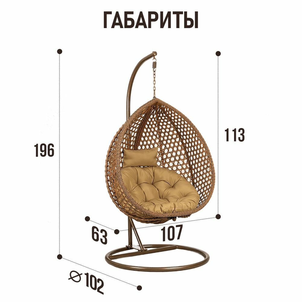 Купить Подвесное кресло качели плетеное из искусственного ротанга Сафира Премиум, коричневый. Садовые качели