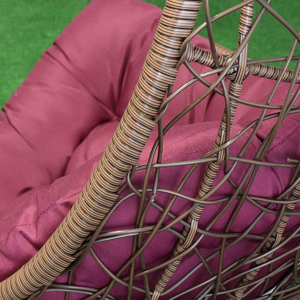 Купить Подвесное кресло Кокон, 1-мест, 125х105х195 см, 100 кг, Груша, кофейное, ротанг, подушка бордовая, Y6-1803