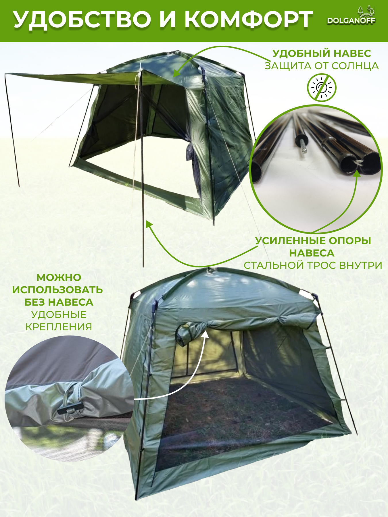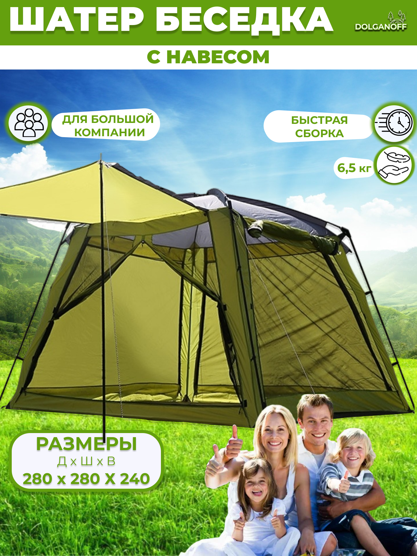 Шатер 2051,DOLGANOFF , 280х280х240, 5-ти местный интересное: