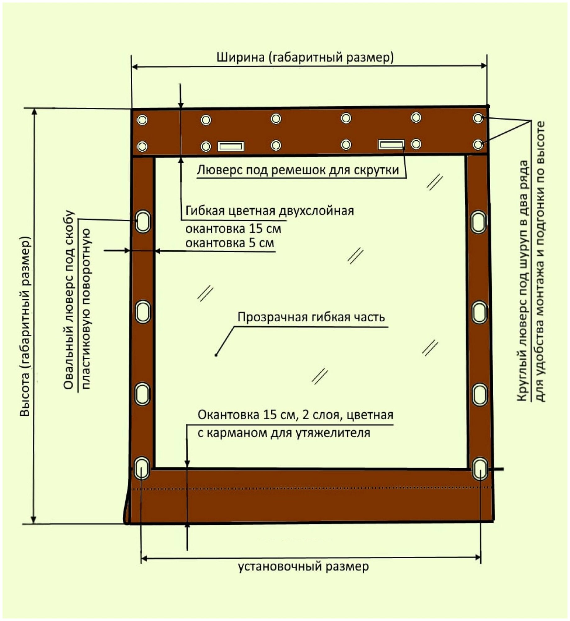 Мягкое окно 120х160 см для террасы, беседки, цвет окантовки коричневый интересное: