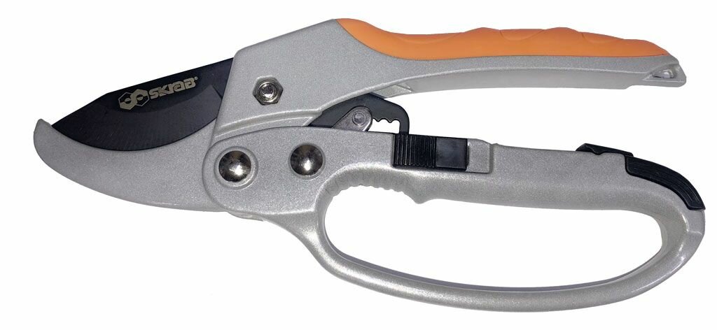 Секатор садовый 200 мм храповый механизм контакт SK5 Тефлон SKRAB 28548 интересное:
