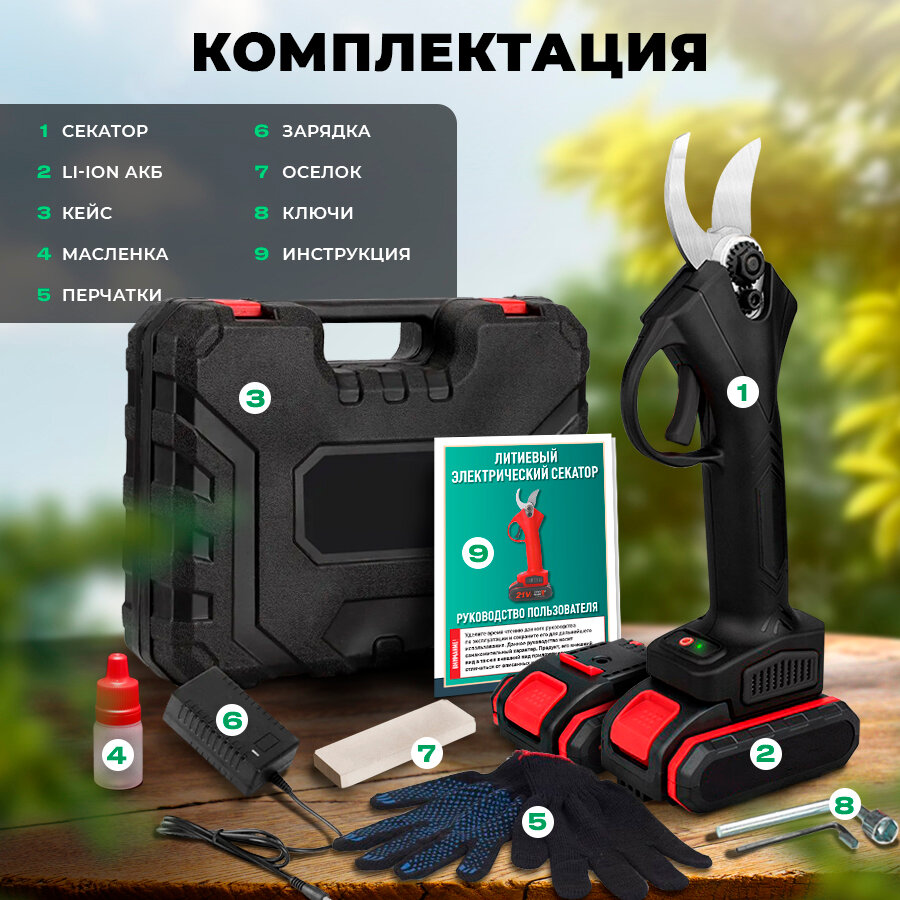 Купить Ручной садовый секатор аккумуляторный Wiekk 2 АКБ, электрический сучкорез для обрезки деревьев (перчатки в подарок)