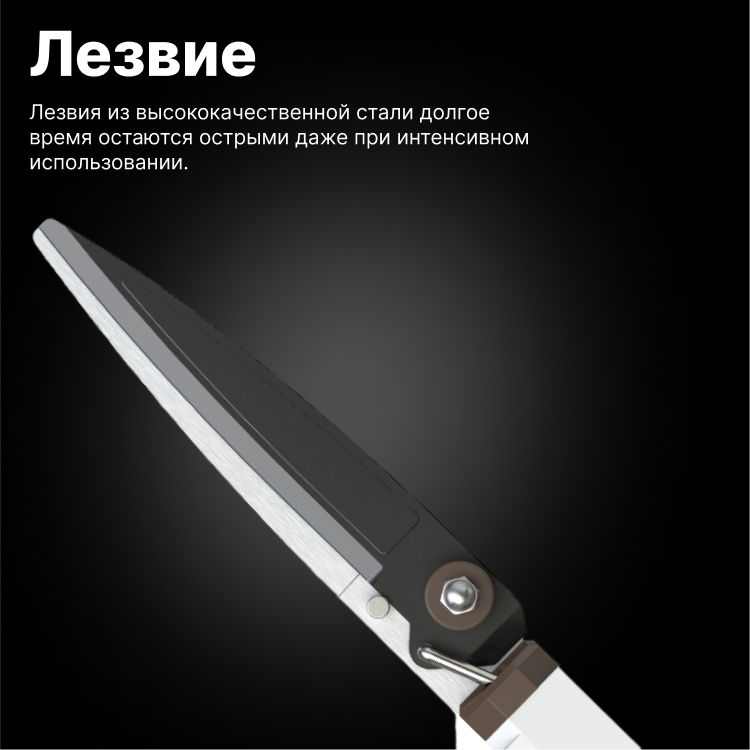 | Особенности | поворотная рукоятка, противоскользящее покрытие рукояток, с эфесом, фиксатор лезвий |