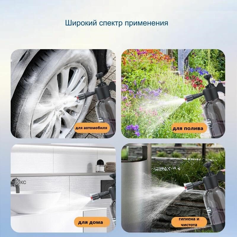 Распылитель пенный, пенообразователь для автомобиля, дома, сада/ Генератор моющей пены, опрыскиватель с 2 насадками черный 2Л интересное: