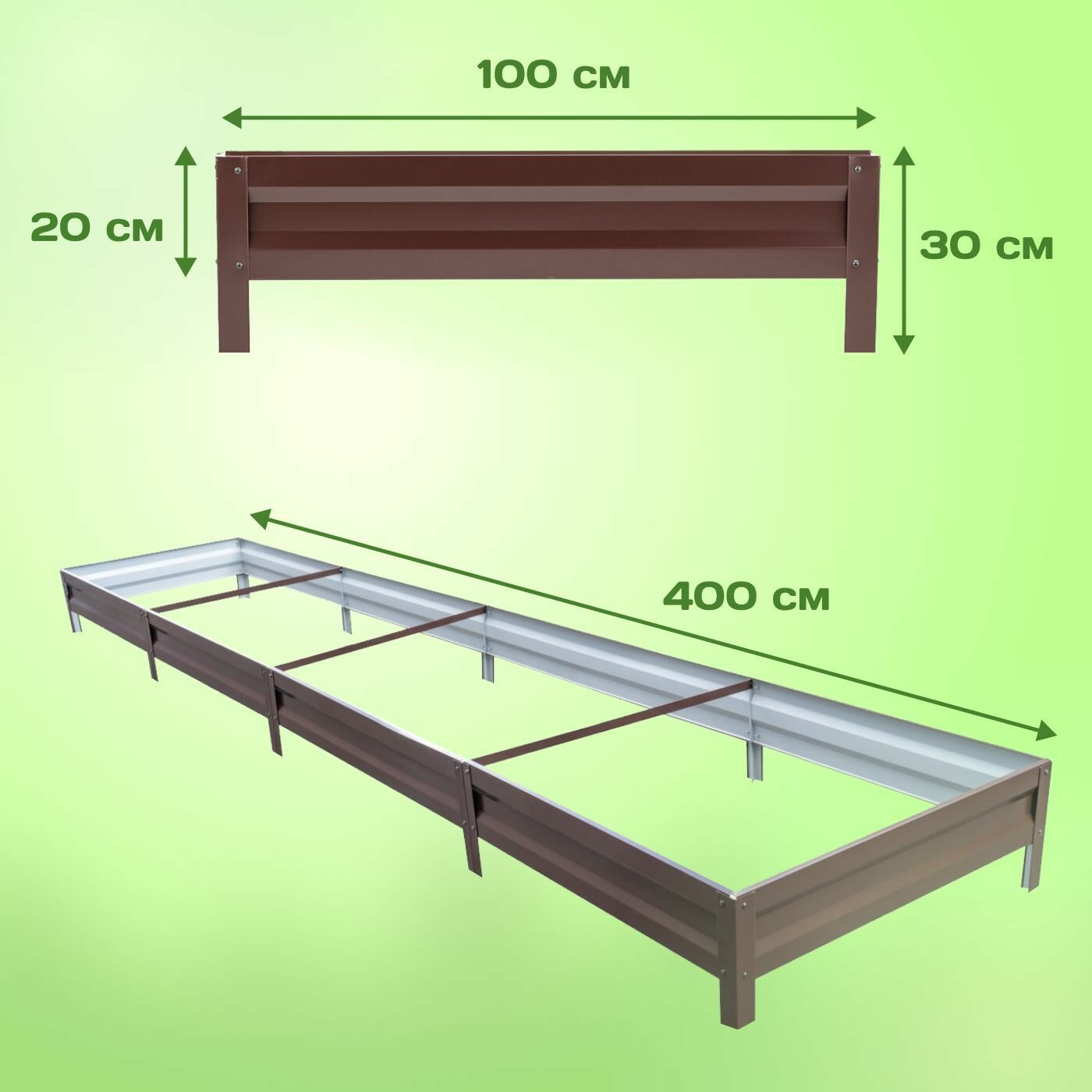 Грядка оцинкованная с полимерным покрытием 1,0х3,0 м, высота 20 см, Цвет: Шоколадно-коричневый
