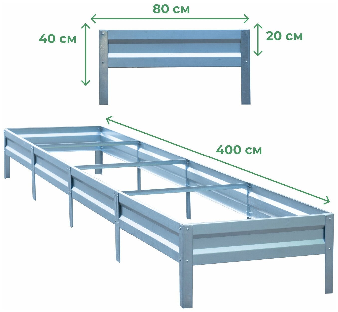 Купить Грядка оцинкованная 0,8х4,0 м, высота 20 см, Цвет: Серебристый