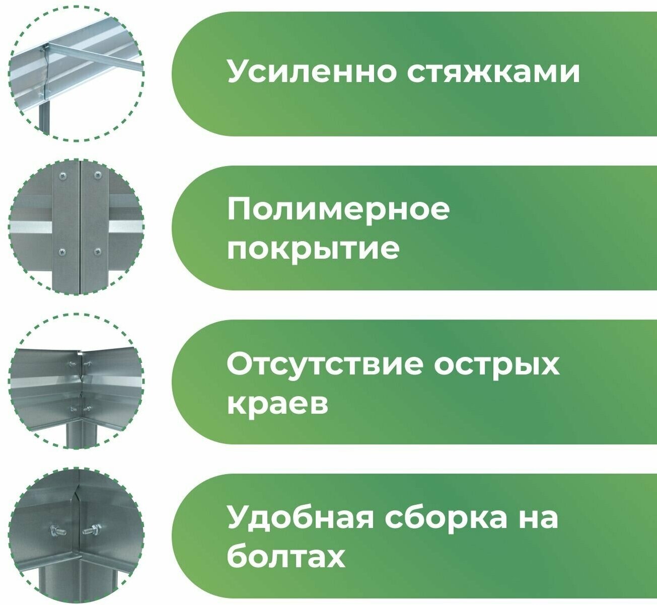 Грядка оцинкованная с полимерным покрытием 1,0х4,0 м, высота 30 см, Цвет: Зеленый мох