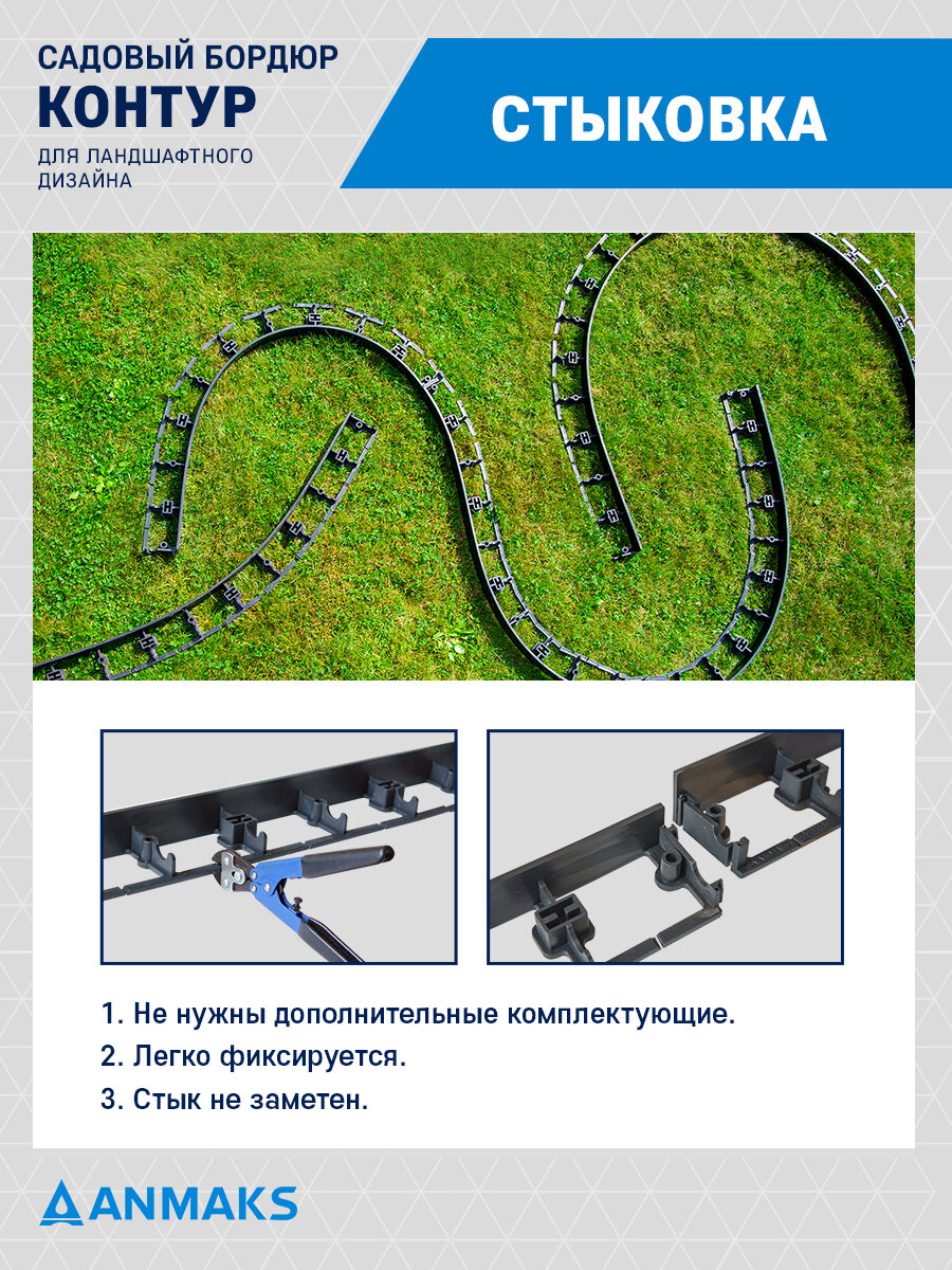 7280-К-6-18 Экобордюр контур Б-100.08.08 пластиковый черный L-1000 мм, H-80 мм, (упаковка 6 шт. плюс 18 якорей) интересное: