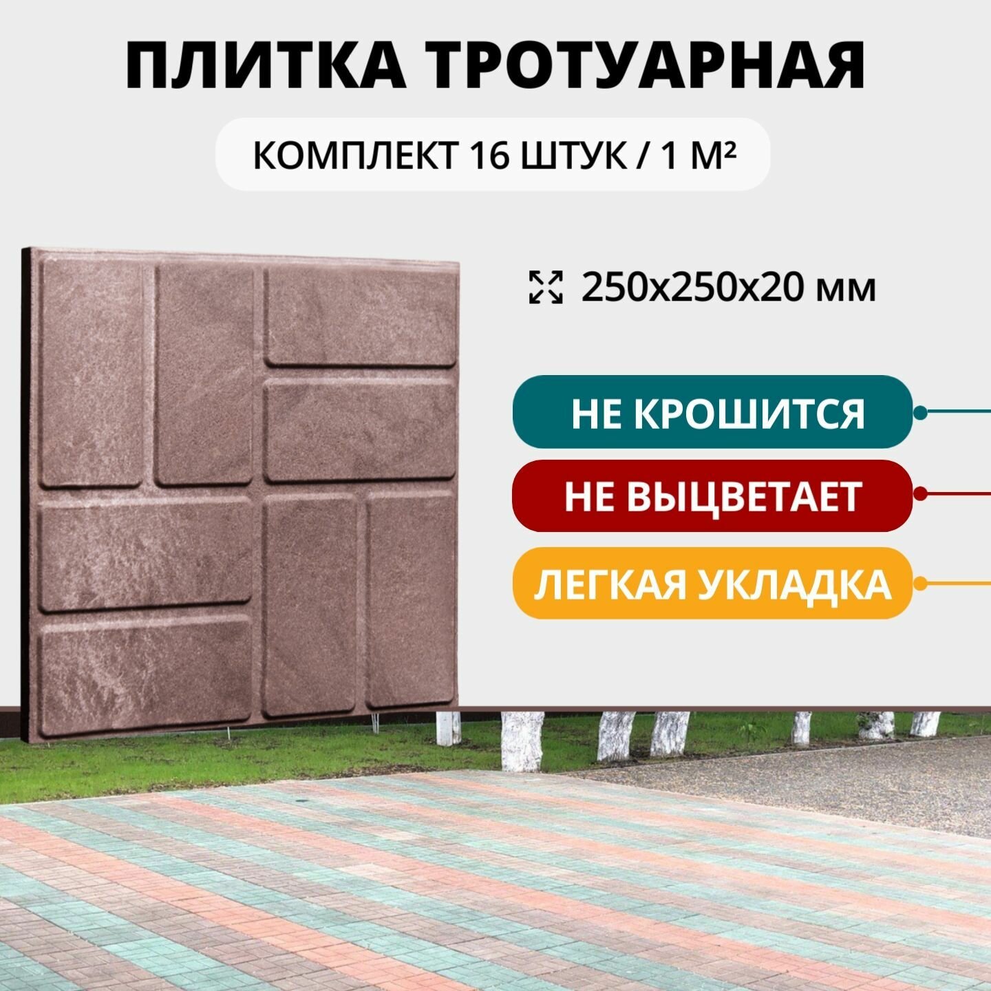 Плитка садовая полимерно-песчаная, 25х25х2 см, коричневая, 16 шт. интересное: