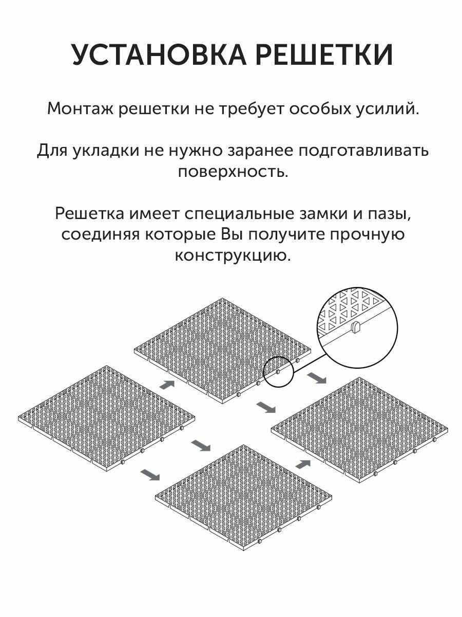 | Подробная комплектация | Уличная модульная решетка - 18 шт. |