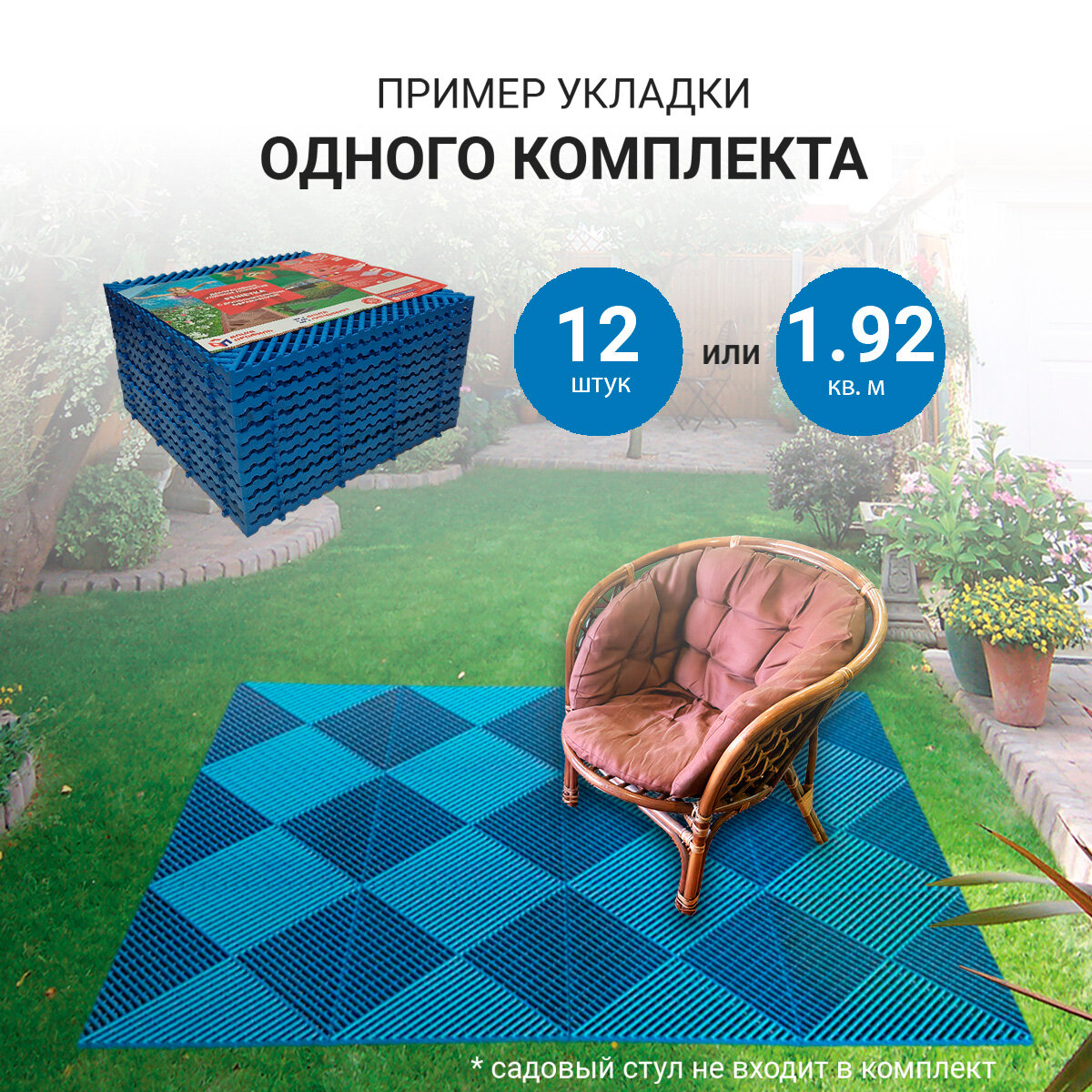 СохранитьУсиленное модульное покрытие пвх садовое (толщина 1.8 см) для дорожек на даче, пластиковое грязезащитное покрытие для бассейна, детской площадки, парковки, плитка антикаблук противоскользящая 40x40 см (синее) интересное: