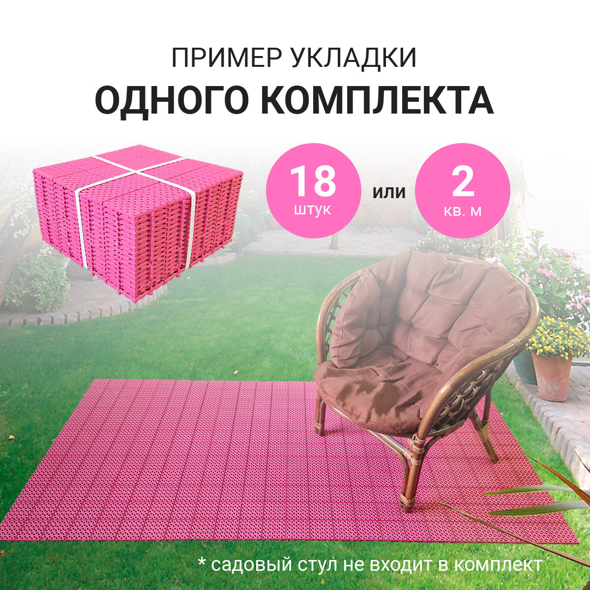 Усиленное модульное покрытие пвх садовое (толщина 1.8 см) для дорожек на даче, пластиковое грязезащитное покрытие для бассейна, детской площадки, парковки, плитка антикаблук противоскользящая 40x40 см (розово-вишневое)
