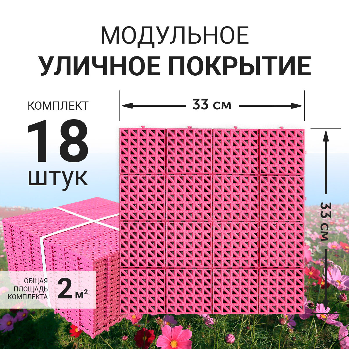 СохранитьМодульное уличное покрытие (газонная решетка) для сада, дорожки, детской площадки, бассейна, 33x33см (розовое) интересное: