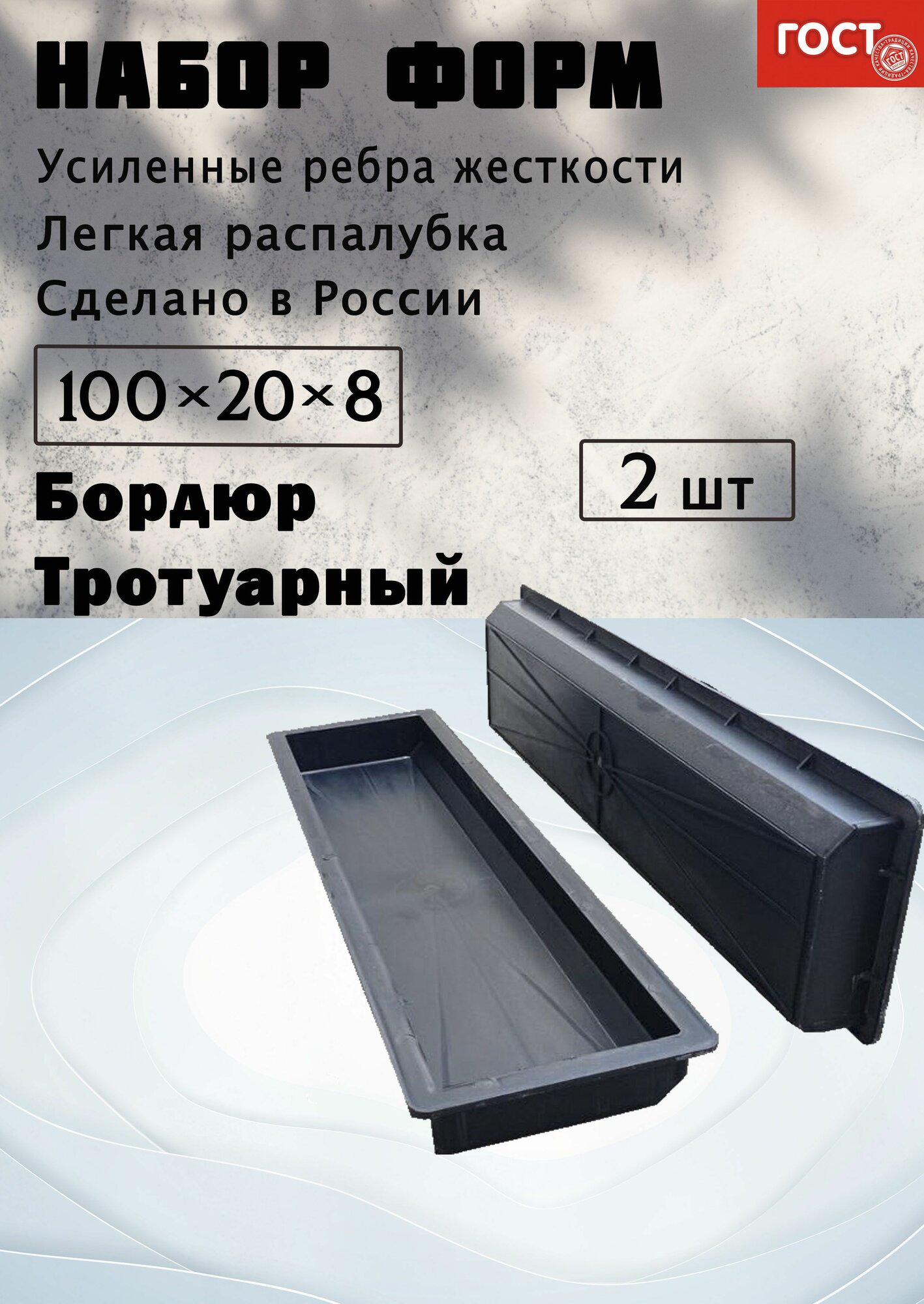 Купить Форма для бетона "Бордюр тротуарный" ГОСТ 2 шт, 100х20х8 см / формы для бордюров