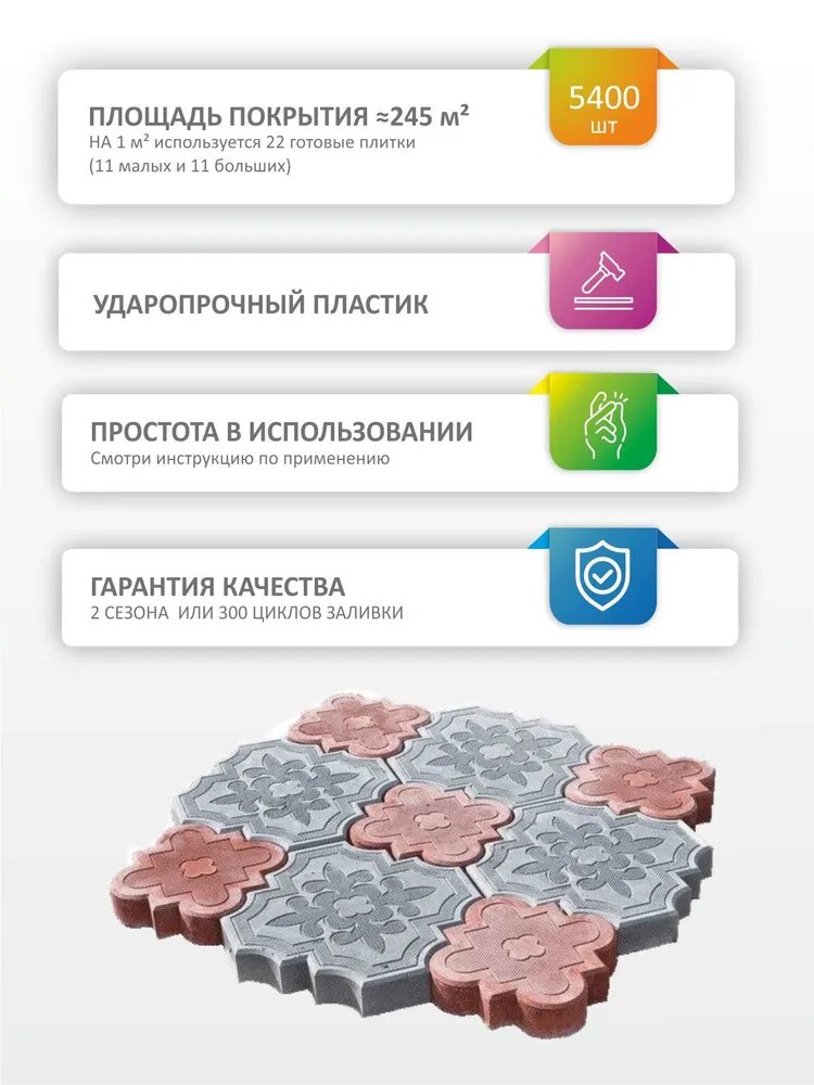 Форма для тротуарной плитки брусчатки Клевер краковский большой, 298х298х45 мм; малый 220х220х45 мм 18 штук интересное:
