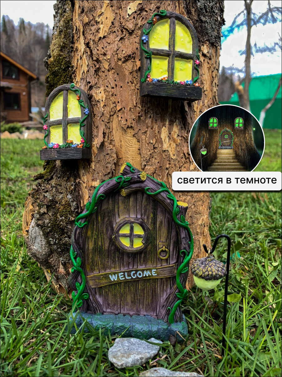 Дверка для гномов эльфов фей на дерево на пень интересное: