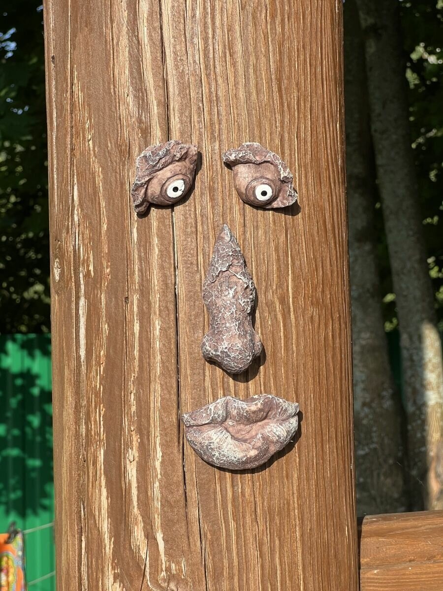 фигурка садовая лицо лесовика на дерево интересное: