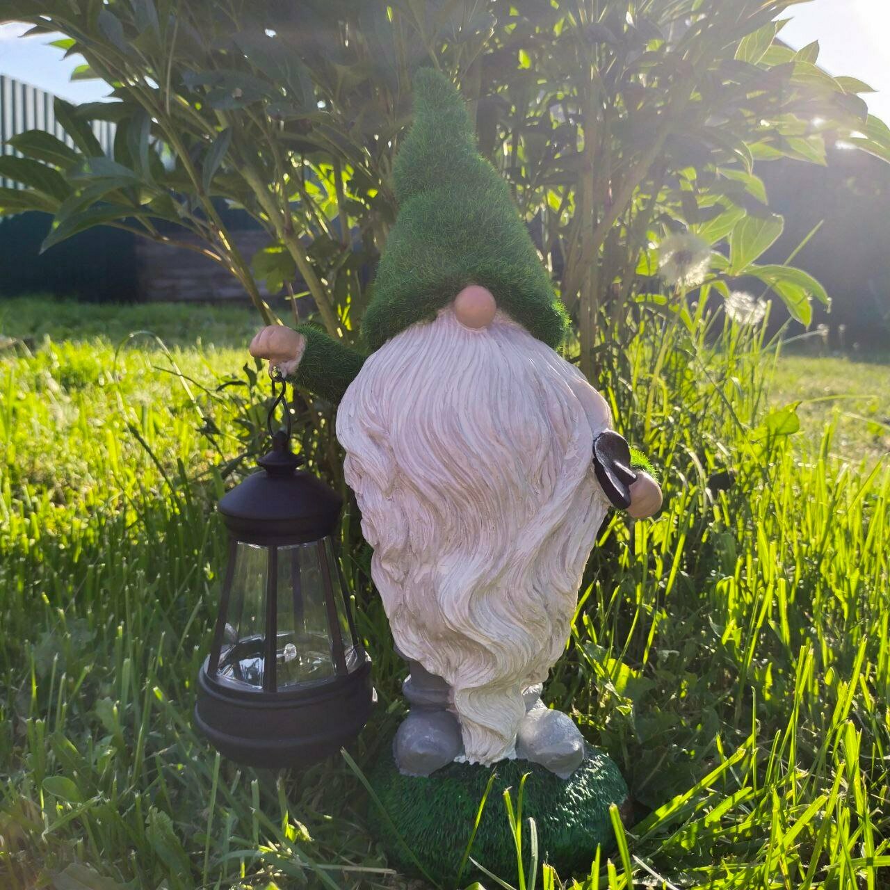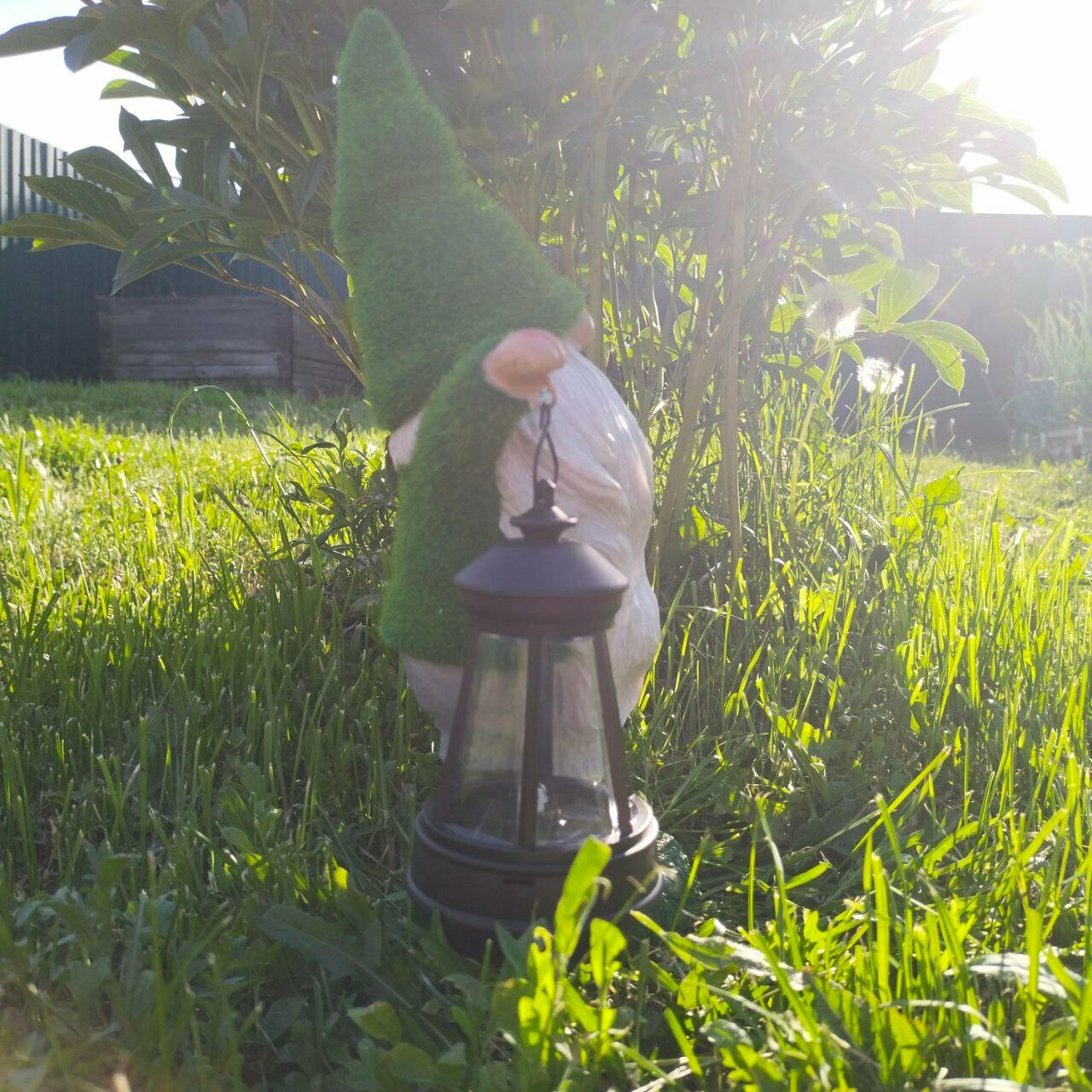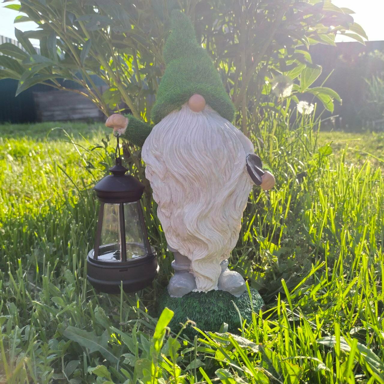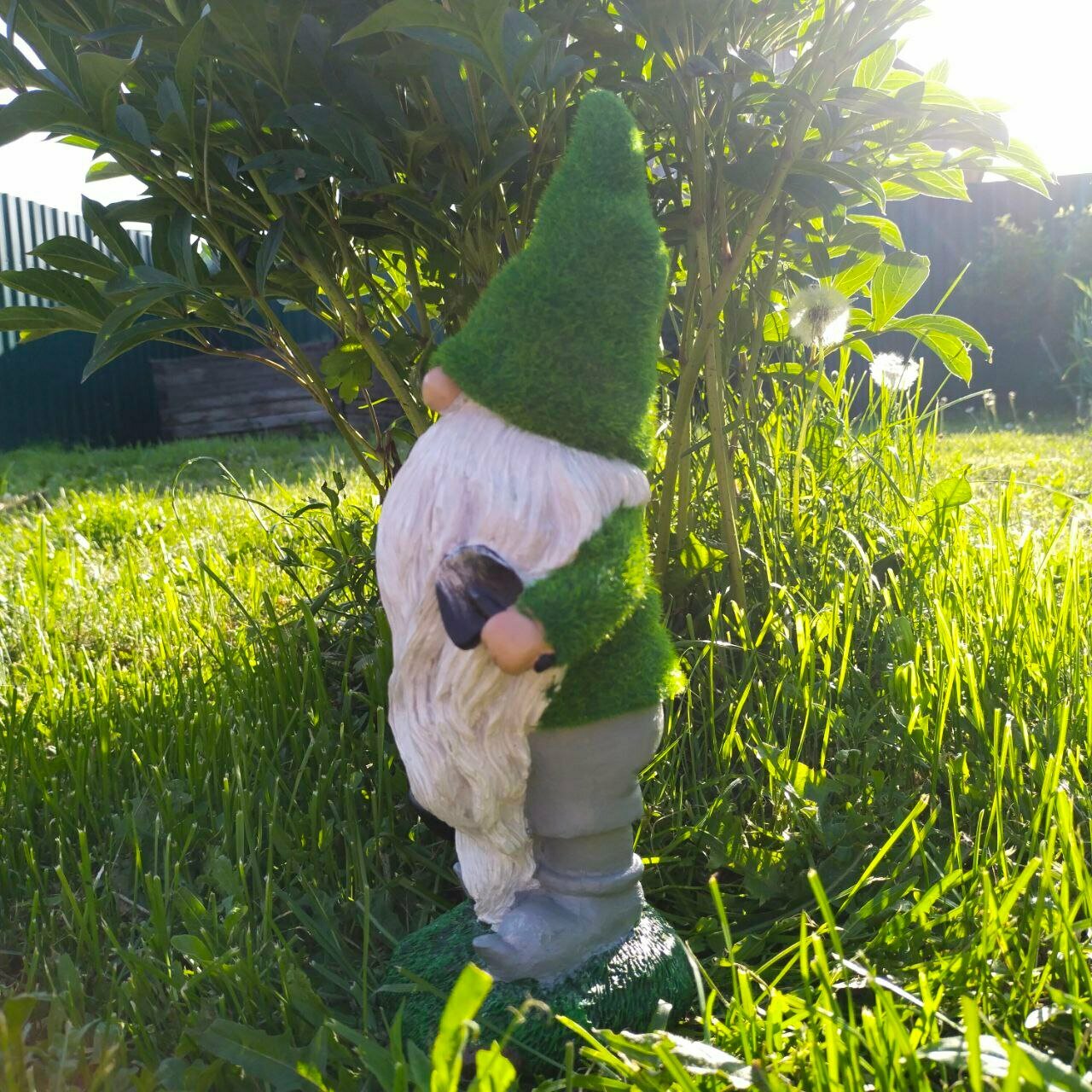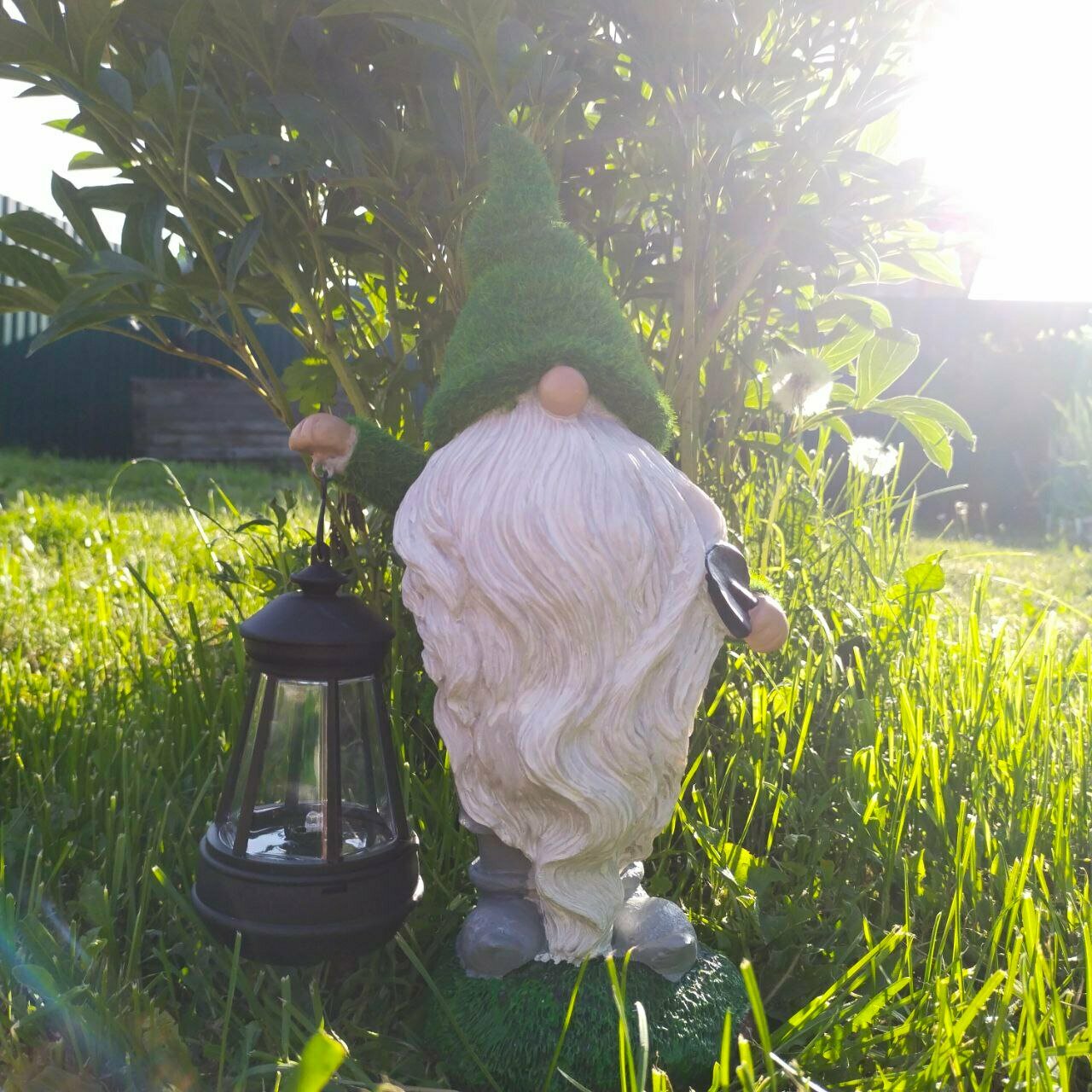 Садовая фигурка на газон с подсветкой "Гном бородач с лампой и лопаткой", материал - полиэфирная смола интересное: