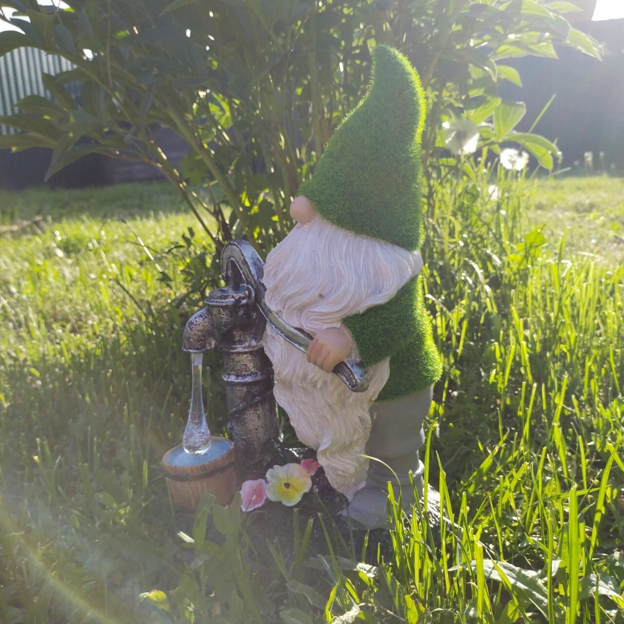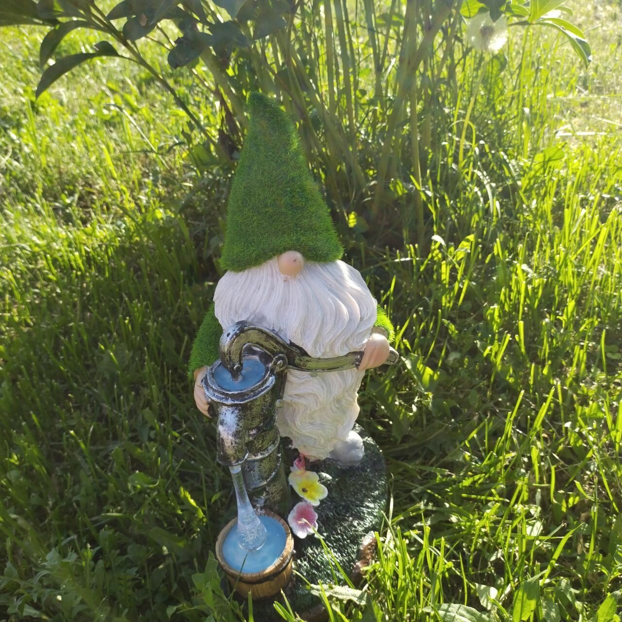Садовая фигурка на газон с подсветкой "Гном с водяной колонкой", материал - полиэфирная смола интересное: