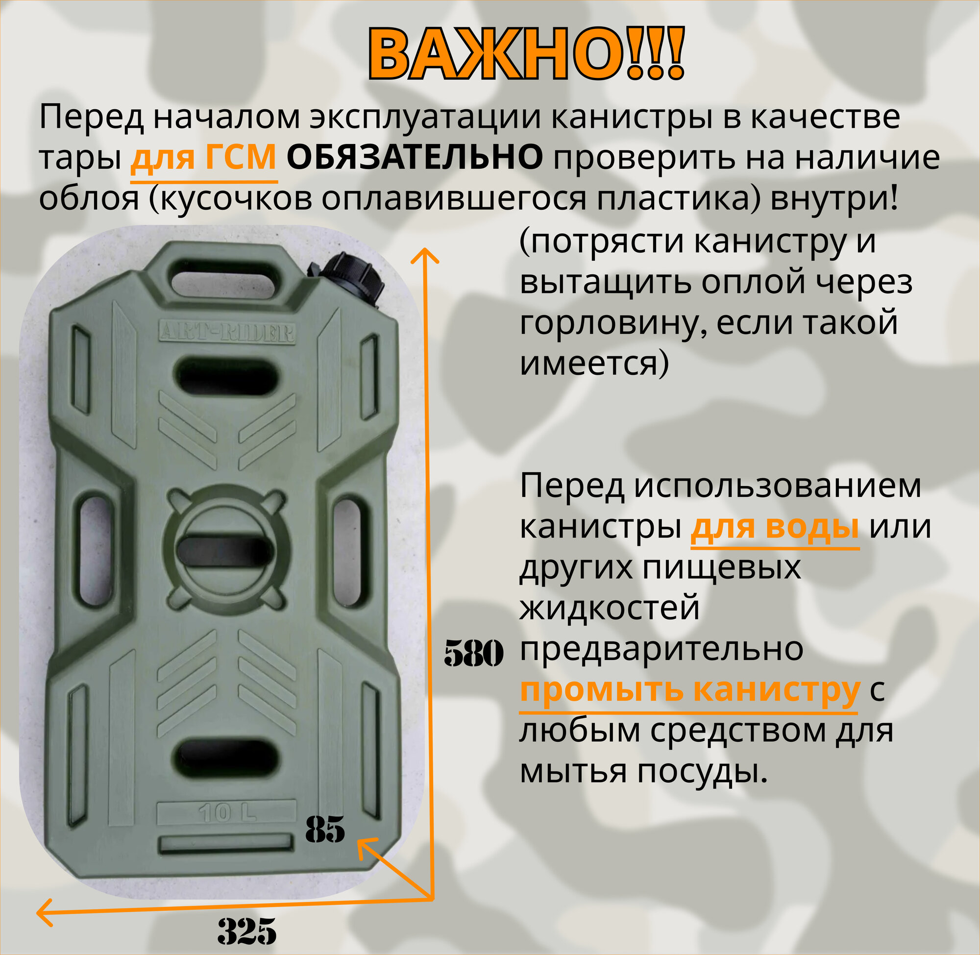 СохранитьКанистра для бензина ART-RIDER 10 л, канистра для воды, канистра экспедиционная, горизонтальная, хаки интересное:
