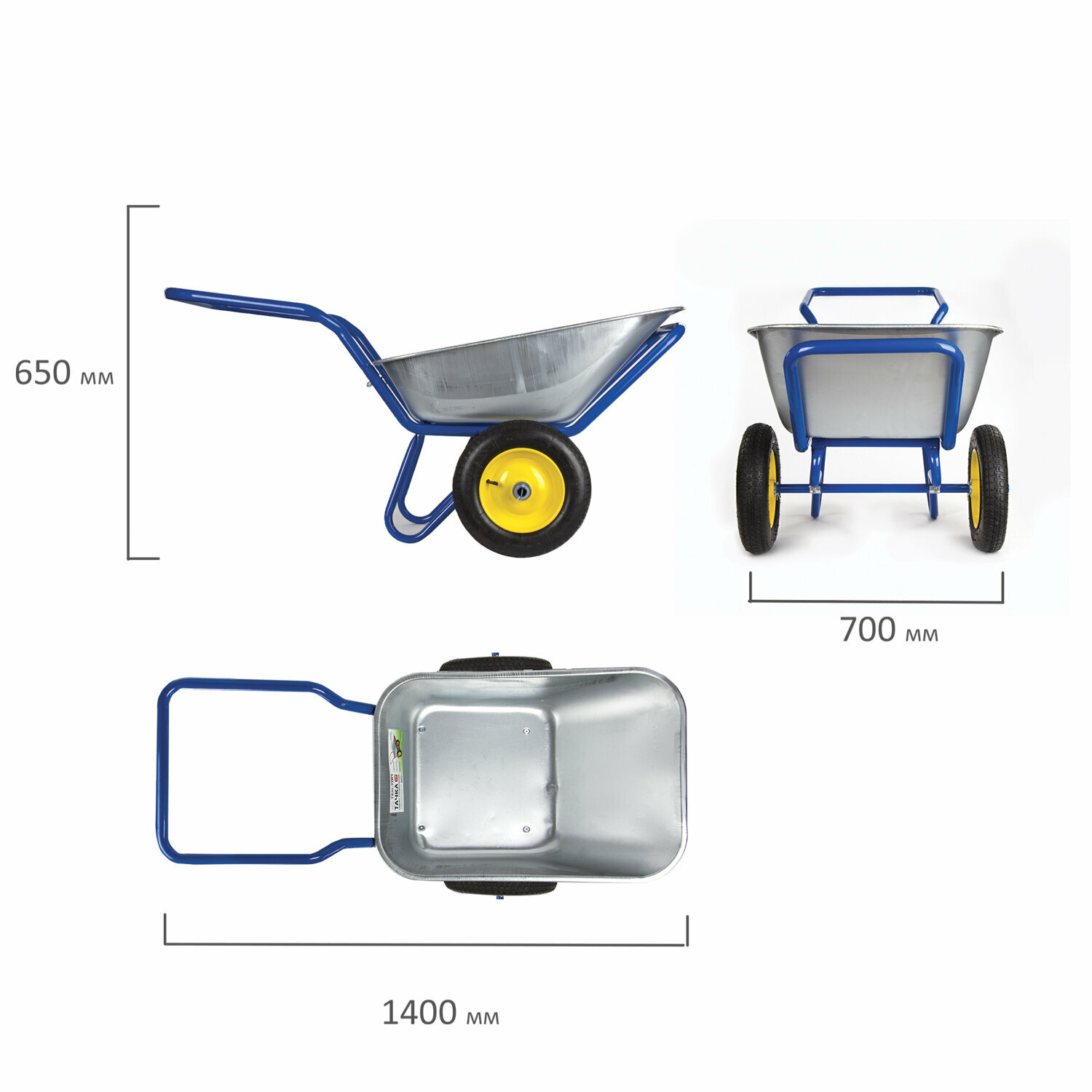 Тачка садово-строительная ТЕХ-ТОП, 110 л, максимальный вес 260 кг, цинковый кузов, пневмоколеса d=360 мм, 606628, 1шт в компл. интересное: