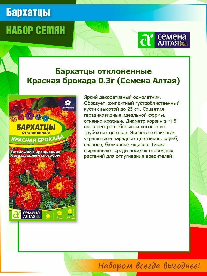 Набор садовых цветов бархатцев от Семена Алтая (6 пачек) интересное: