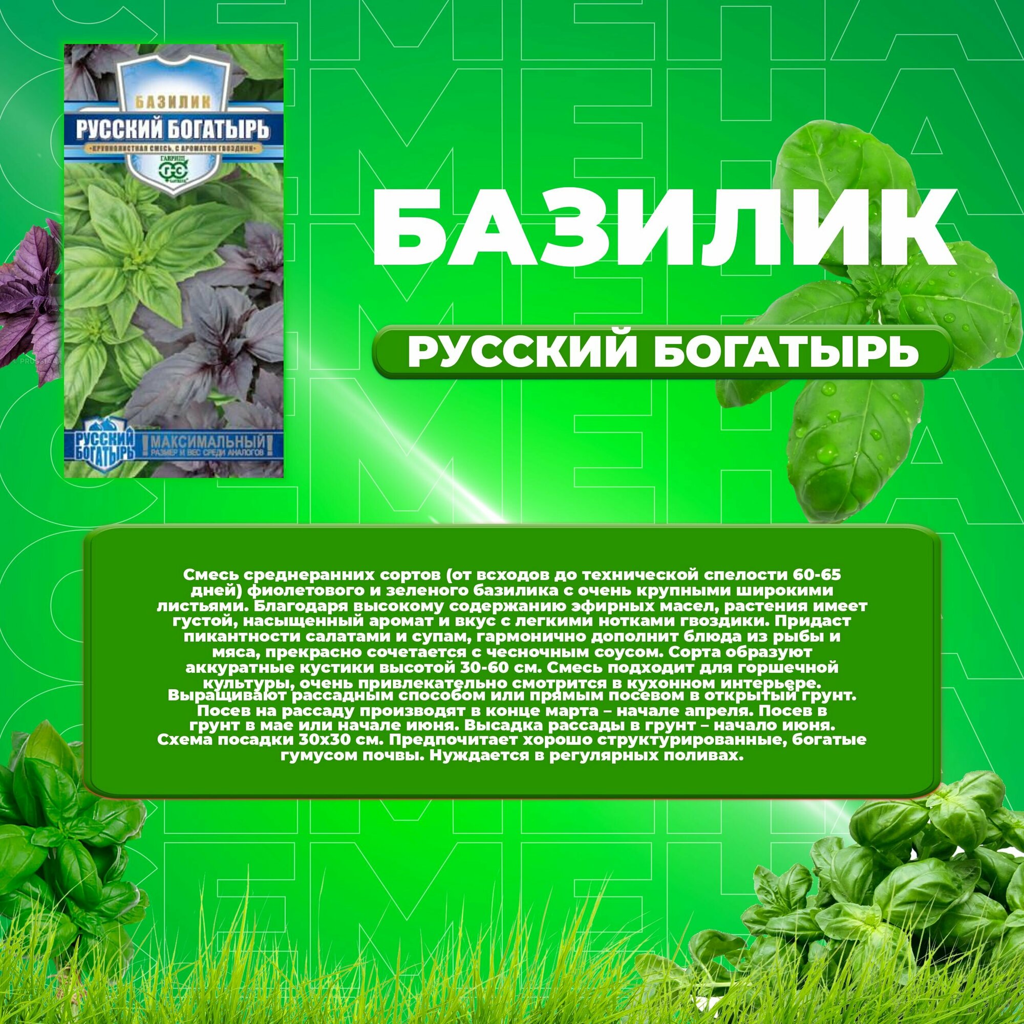 Семена Базилик Русский богатырь, смесь Ср. (гавриш) 0,3г (А) интересное: