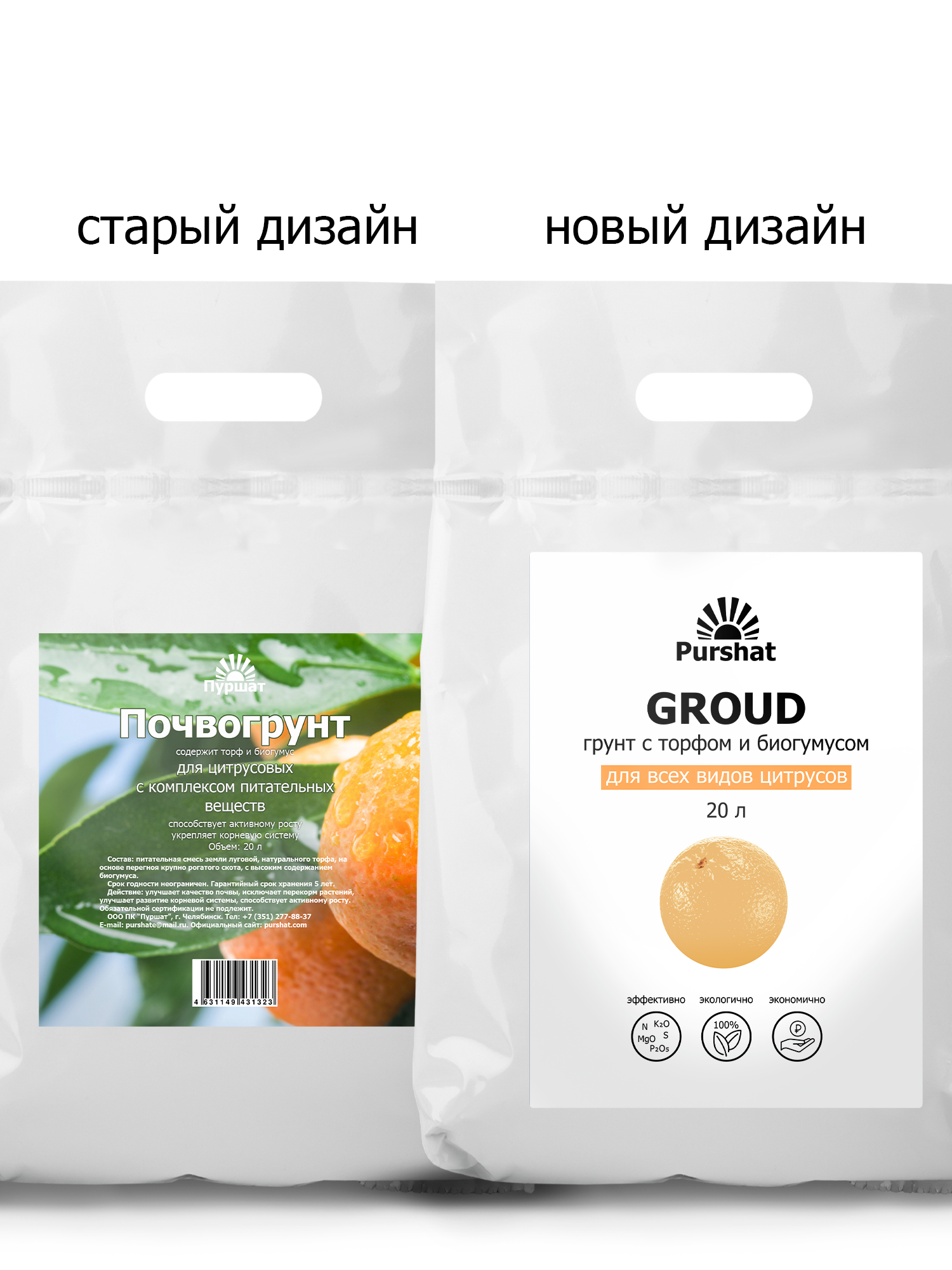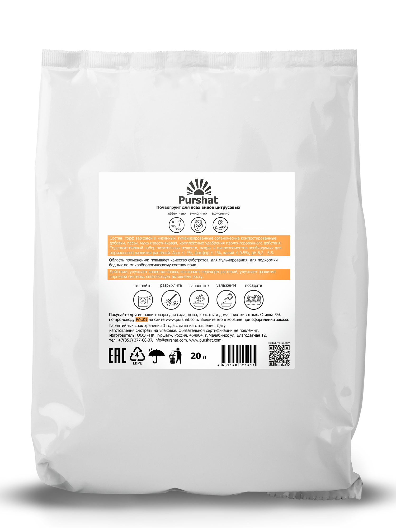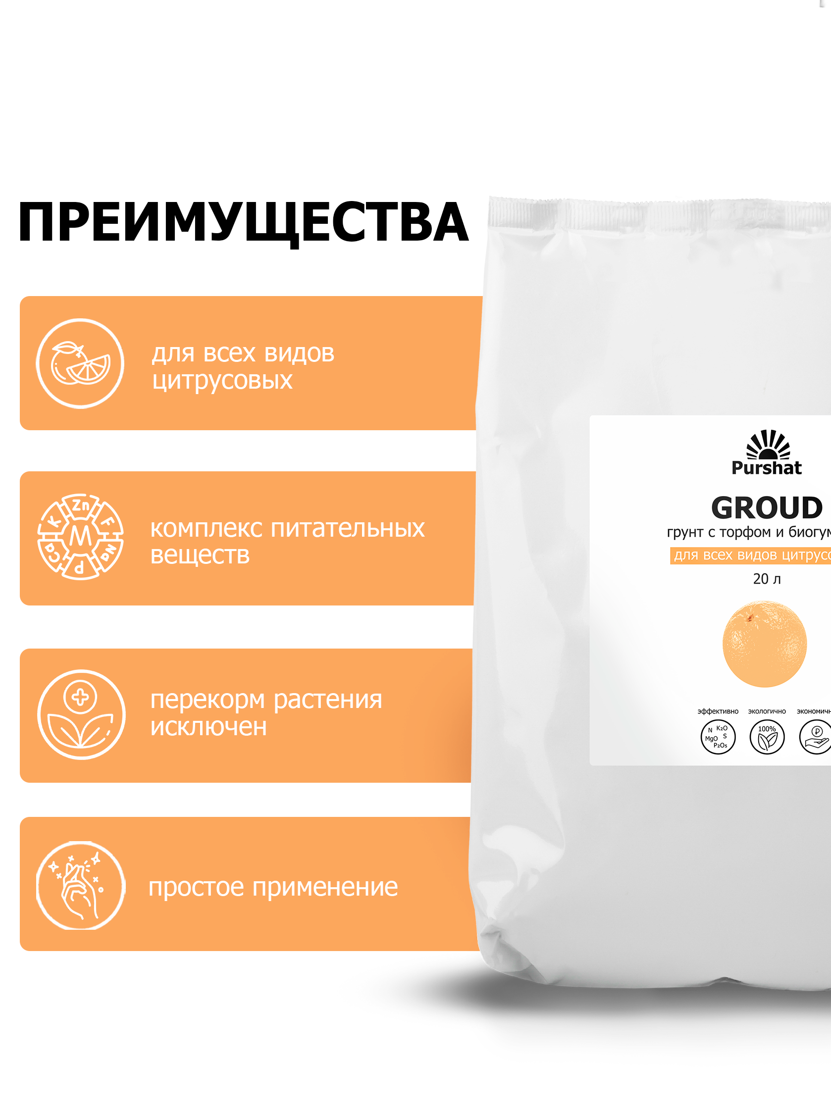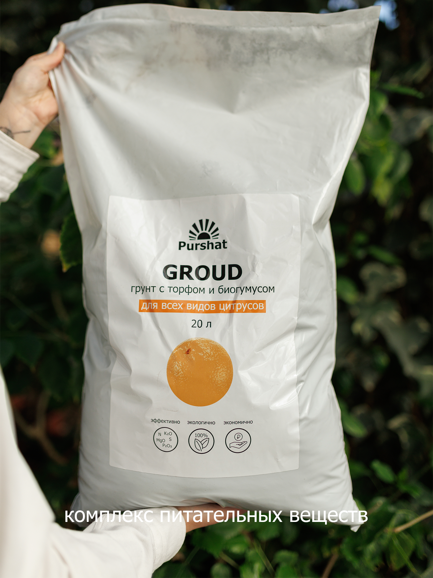 Купить Грунт (земля) для цитрусовых (лимон, мандарин, авокадо) Пуршат. Питательный почвогрунт с торфом и биогумусом (Purshat) 20 л