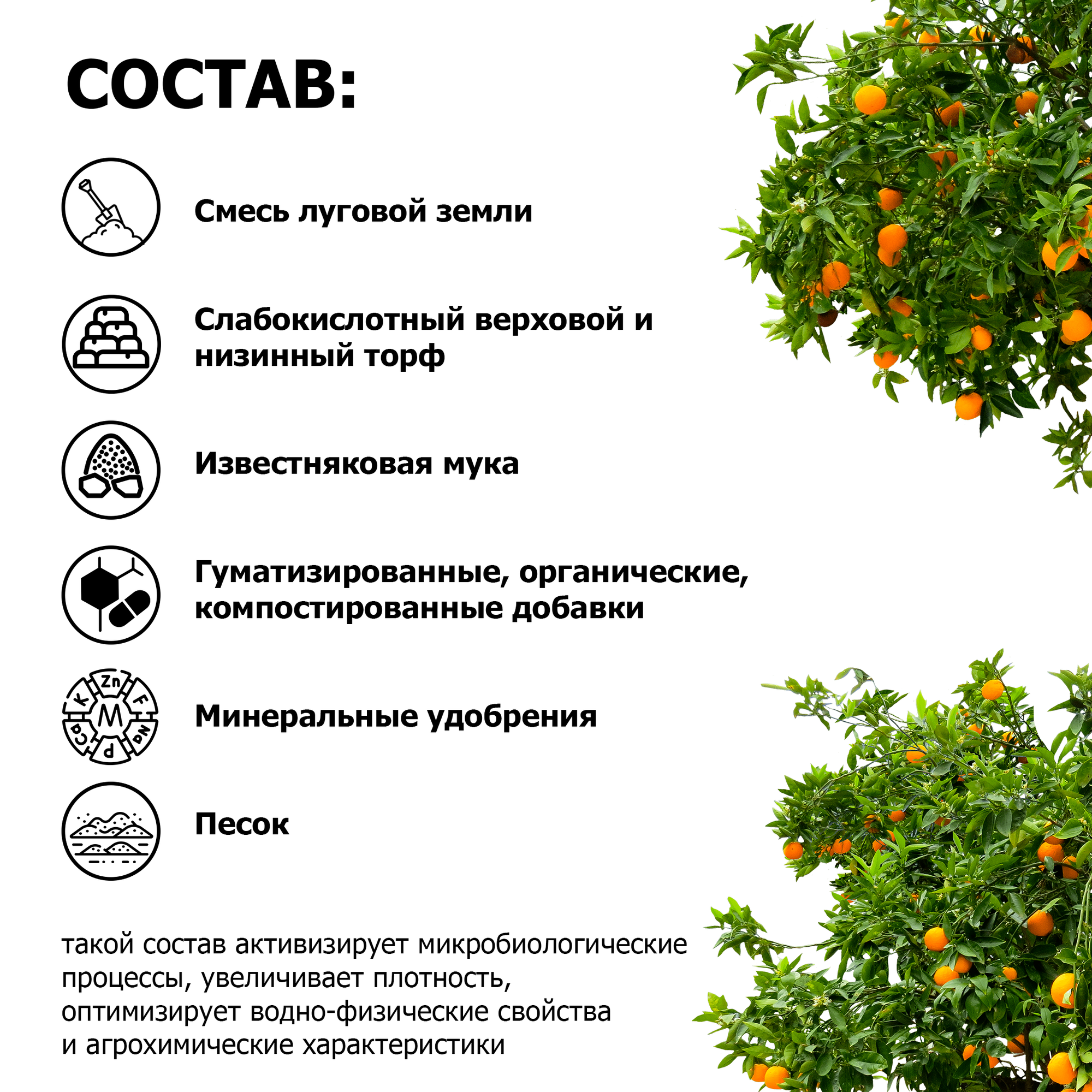 | Состав | Грунт (земля) для цитрусовых (лимон, мандарин, авокадо) Пуршат. Питательный почвогрунт с торфом и биогумусом (Purshat) 5 л |