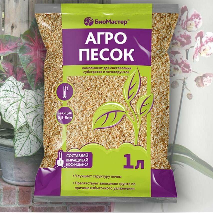 Песок речной/агропесок/субстратный компонент для приготовления грунта для выраживания ароидных и других комнатных растений , 1л интересное: