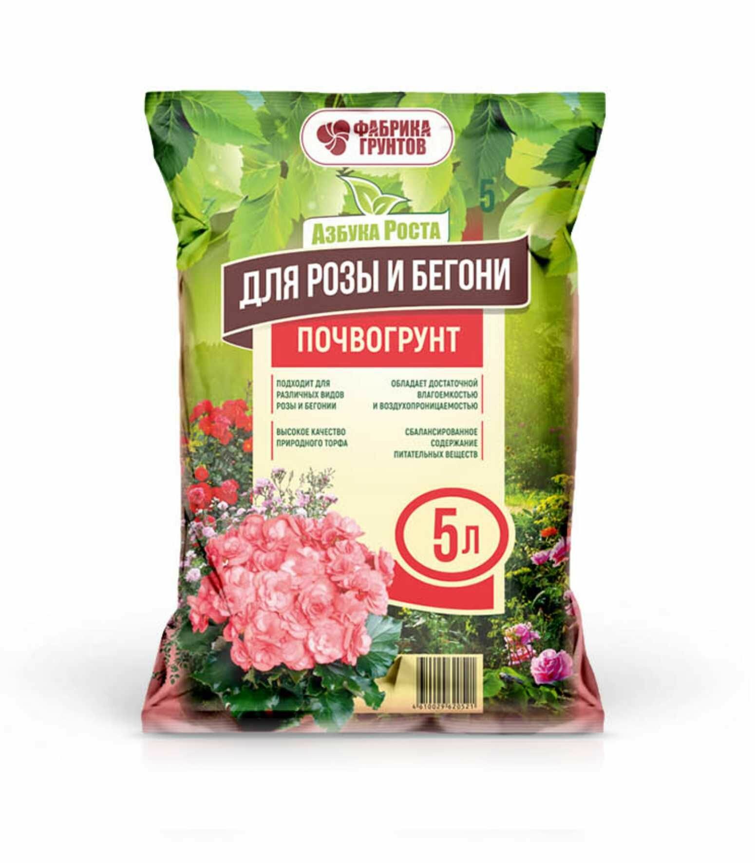 Купить Почвогрунт Азбука Роста для Розы и Бегонии 5л., Фабрика торфа