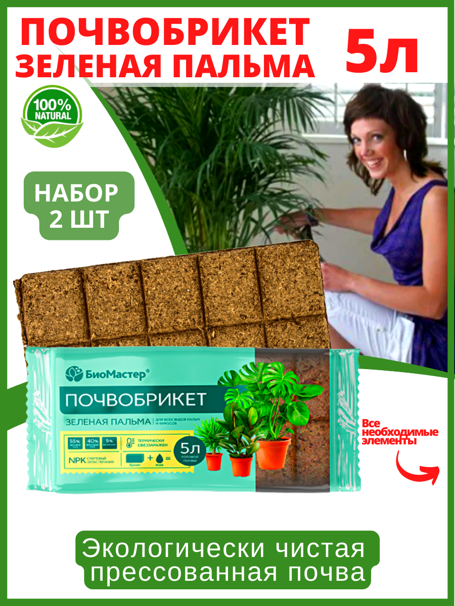 Купить Почвобрикет БиоМастер Зеленая пальма 5л, 2 шт