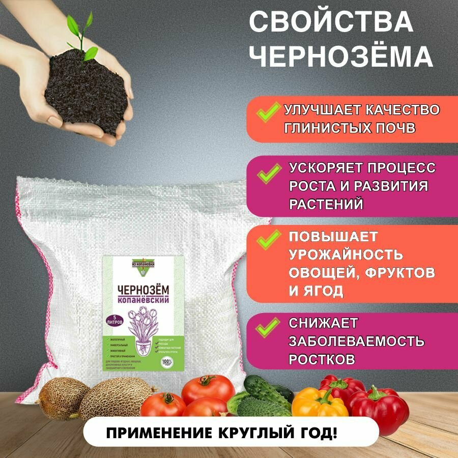 Земля-грунт (Чернозем Копаневский) для комнатных растений и сада 5 литров / 4 кг интересное: