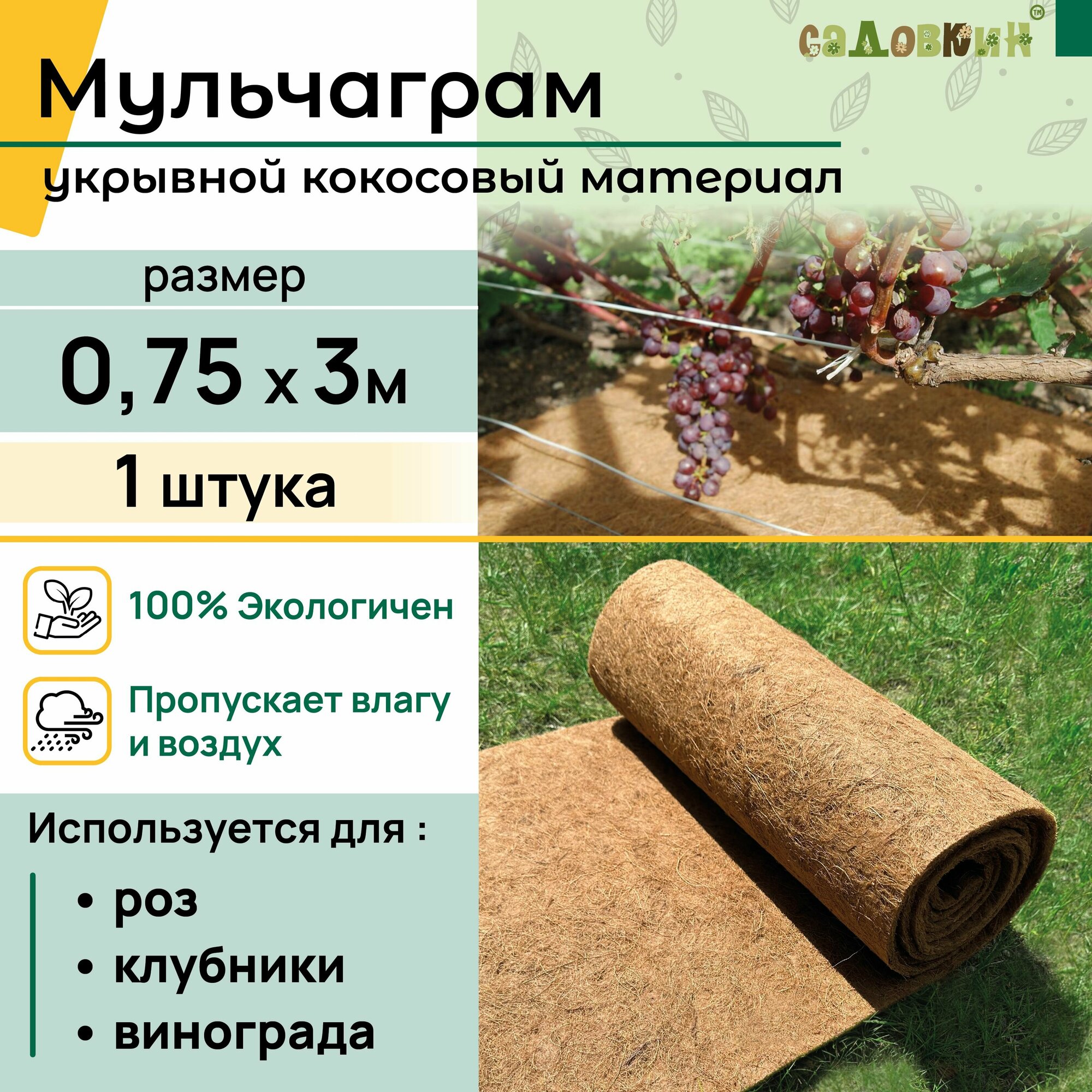 Мульча кокосовая "Мульчаграм", 0.75х3м интересное: